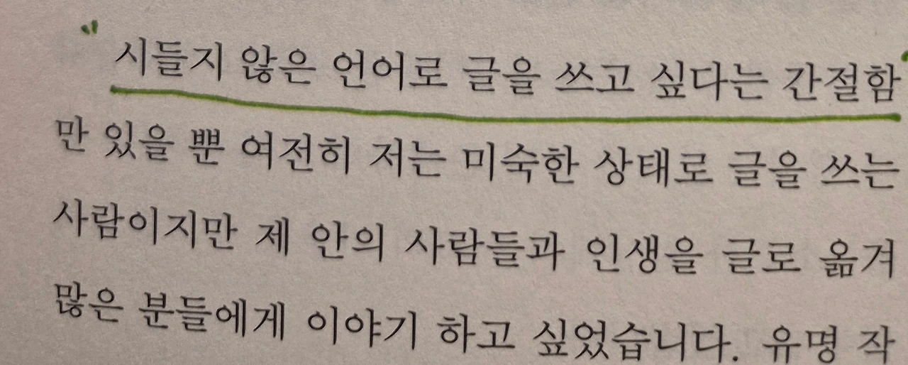 서문에서 언급한 간절한 바람대로 그 어느 계절 시들지 않았으며, 바람이 불고, 눈이 오고, 비가 내리는 그 계절들이 읽으며 되살아났다. 그리고 삶으로 뛰어드는 많은 것들에 대해 나아가는 힘을 볕뉘 작가님은 이렇게 썼다.
