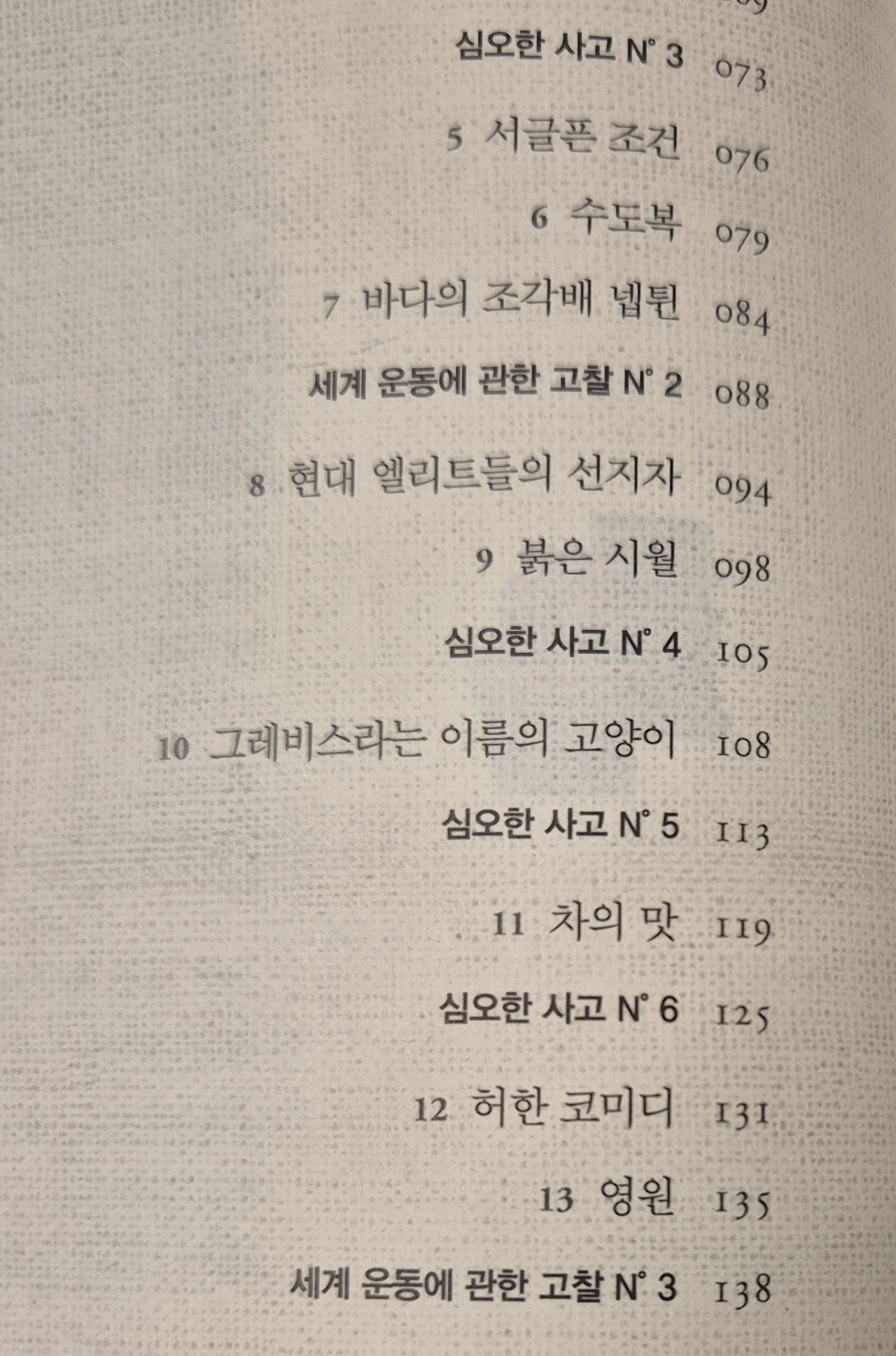액자 소설이라는 뜻이 아니라, 팔로마가 쓴 연속되는 이야기가 목차에 표시되어 있다. 목차에 표시된 [심오한 사고]와 [세계 운동에 대한 고찰]을 다시 이어 읽어볼 생각이다. 처음 목차를 보고, 연작이 2개인 줄 모르고 숫자가 뒤죽 박죽이어서 해설과 요약, 옮긴이의 말을 찾아 도움을 얻으려고 했으나 모두 없다는 사실을 알아냈다.