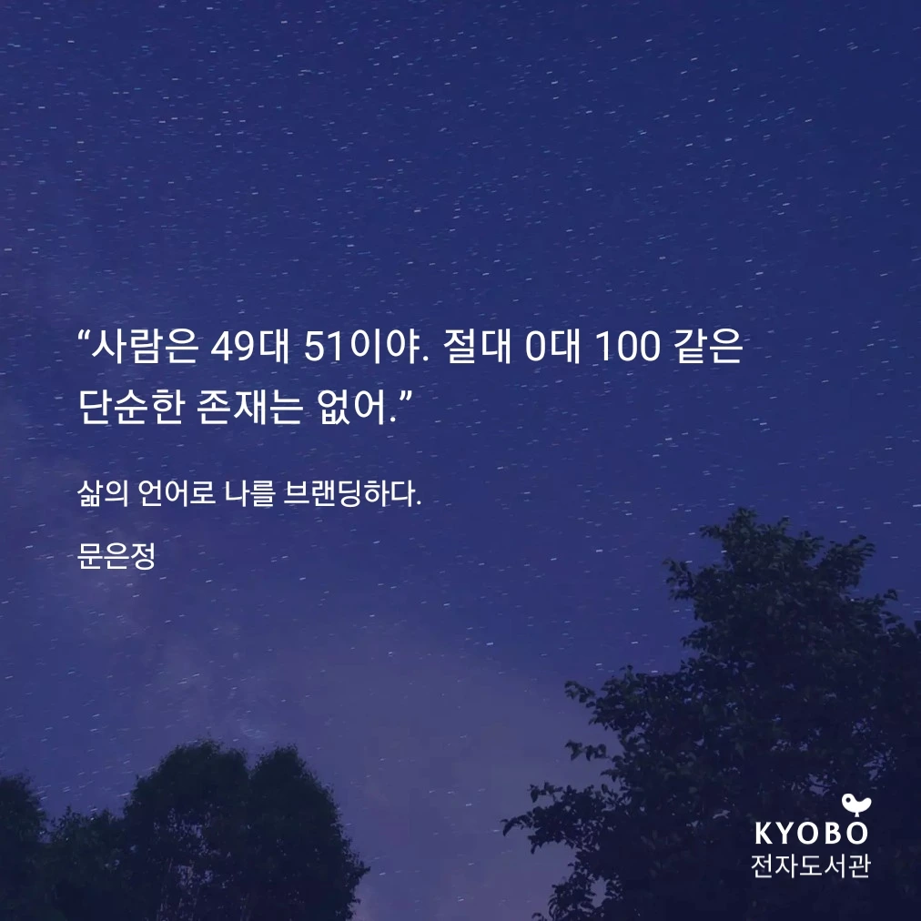 이 한 문장은, 흑백처럼 흐려진 마음을 자연스러운 색으로 살려낸다. 사람은 그렇게 단순하지 않다, 그리고 흔들리지 않는 사람도 없다. '해보는 거지, 뭐'라는 말처럼 겨우 한 걸음 차이가 만든 49와 51이라는 이 문장이 큰 위안이 된다.