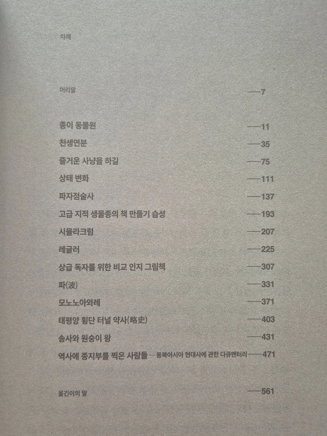 나머지는 어디서 출발했는지 가늠할 수도 없는 우주적 상상력을 담은 단편이다. 특히, [상태변화]는 내 영혼은 어떤 물성인지를 고민해 보게 하는 것으로 매우 흥미로웠다. 그리고 [상급 독자를 위한 비교 인지 그림책]과 같은 단편은 독특한 살아있는 책의 세계였다.