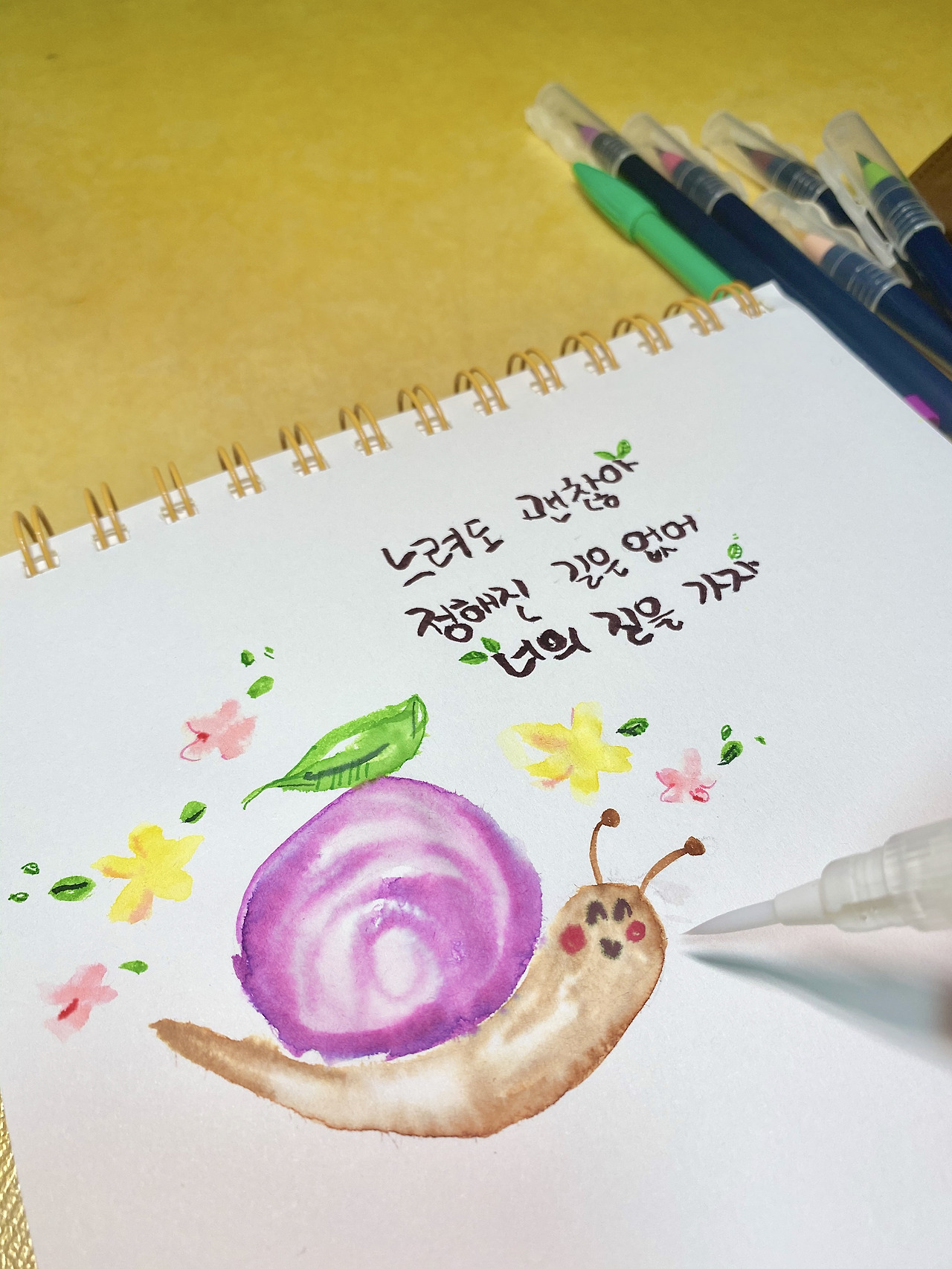 음악은 말할 것도 없겠죠. 그중에서도 글을 빛나게 만드는 건 미술이라고 생각해요. 미술의 세계로 접어드는 첫 단계로 캘리그래피를 시도하고 싶어요. 독학으로도 충분히 가능하다는 말을 들었기 때문이죠. 손글씨를 좋아한 이력도 있으니 충분한 내적 동기도 마련된 셈이고요.