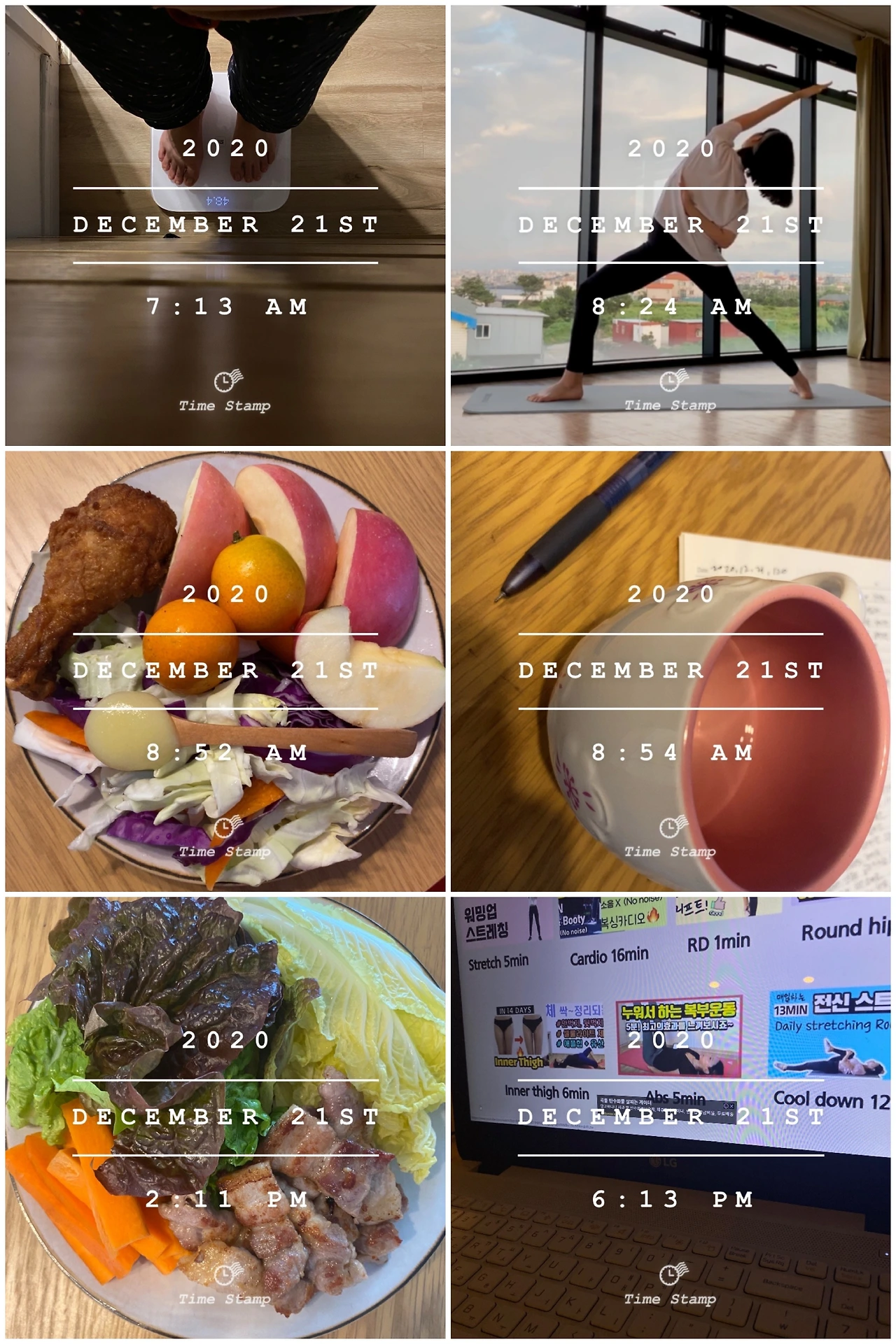 ✨ 기상 스트레칭 10분 오전 공복 요가 30분. 저녁 유산소 1시간과 하체 스트레칭.