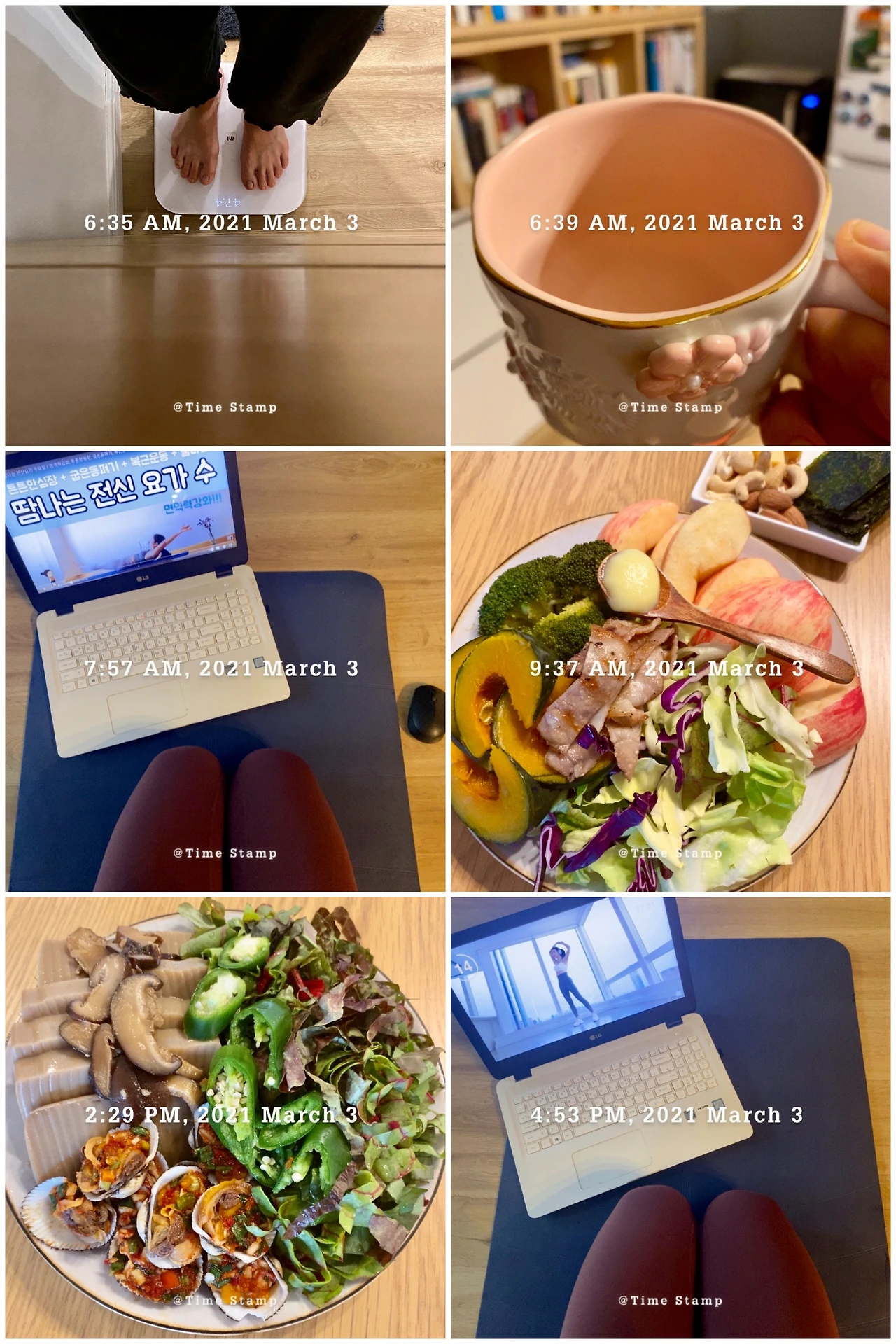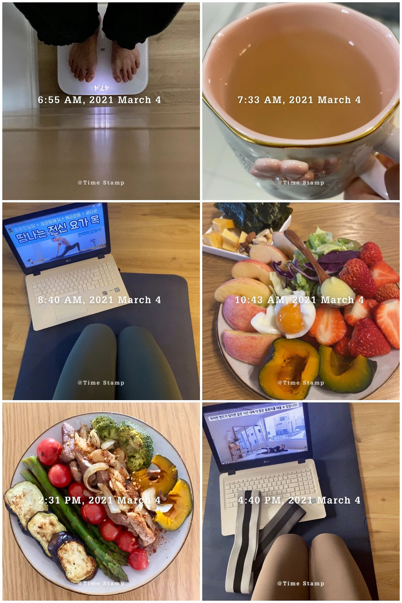 ✨ 기상 스트레칭 10분 공복 요가 30분과 태양 경배 15분과 5분 명상. 저녁 60분 홈트. 30분 유산소+골반 스트레칭+전신 폼 룰러. 찜해놓았던 요일별 은 요가 시작. 오늘 자세 중에 반달 자세가 있었는데 몸의 균형을 잡기가 어려웠다. 처음 하는 자세와 흐름이 달라서인지 중심에 나를 가져다 놓기가 힘들었다. 쭉 따라가 보자. 시작을 했으니.