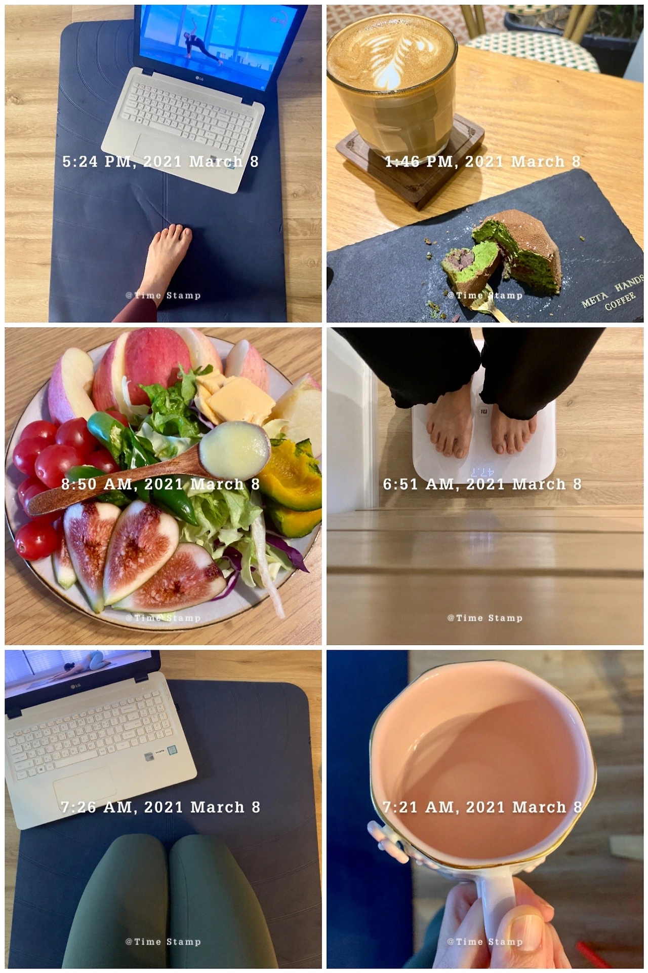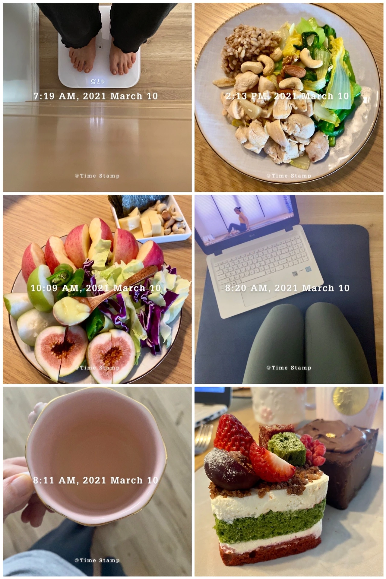 ⏰ Am 9:00-Pm3:00 _ 식사시간 이후 18시간 단식. 정말 오랜만에 외출. 그것도 모임이 2개. 와... 대박 피곤했다. 나의 하루 중 가장 행복한 시간이 점심시간인데. 맛없는 점심을 먹었... 뭐 대신 메탈 핸즈에서 라떼와 말차 케이크로 힐링. 진심 맛있다. 모든 게 용서되는 시간이었음.