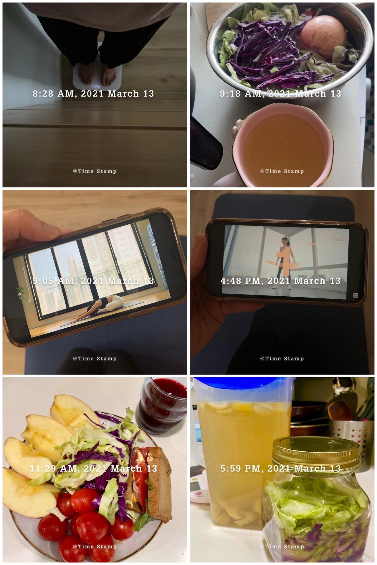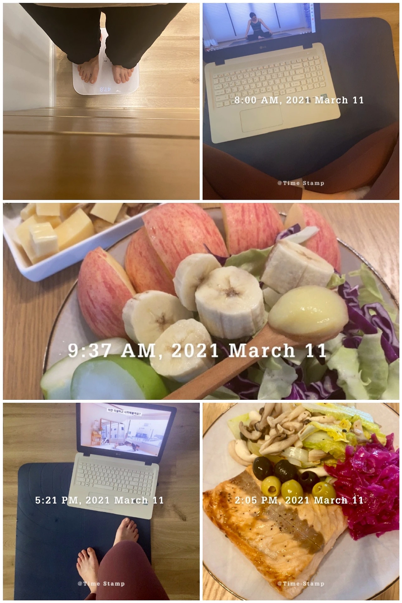 ✨기상 스트레칭 10분 공복 요가 30분과 태양 경배 15분과 5분 명상. 저녁 60분 홈트. 30분 유산소+5분 플랭크+골반 스트레칭+전신 폼 룰러. 수요일의 서리 요가는 등근육 , 평소 잘 늘려주지 않았던 부분들까지 쭉쭉