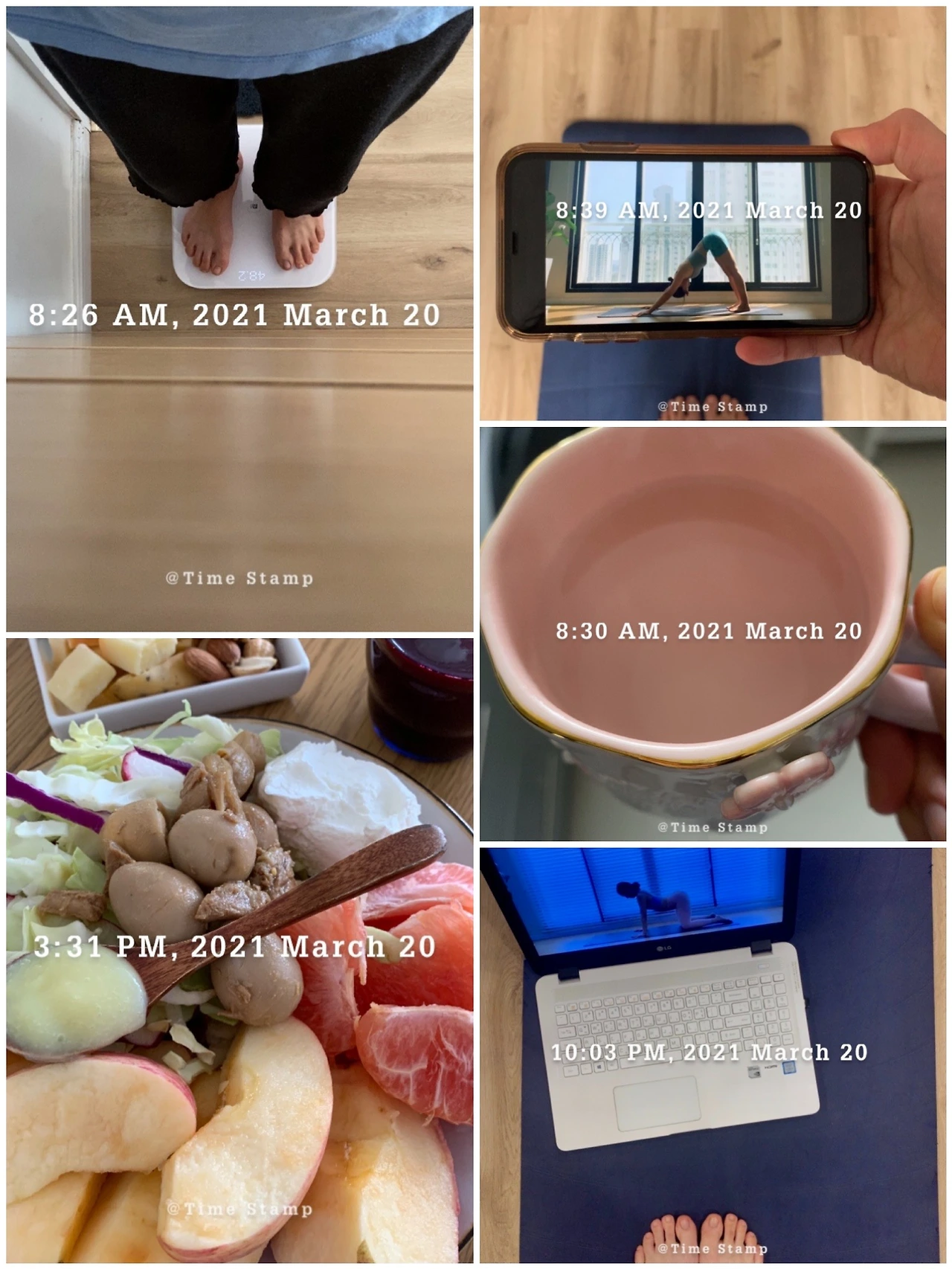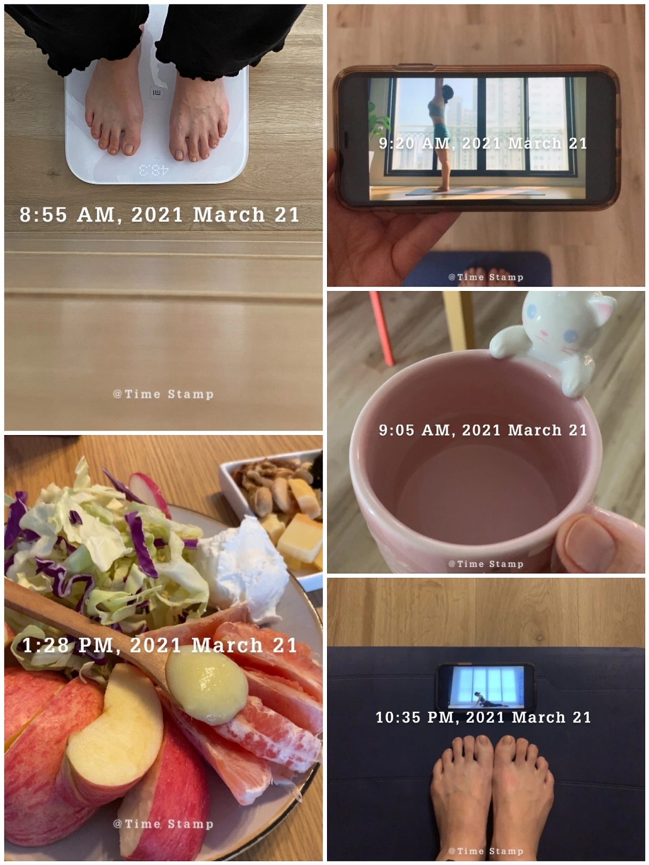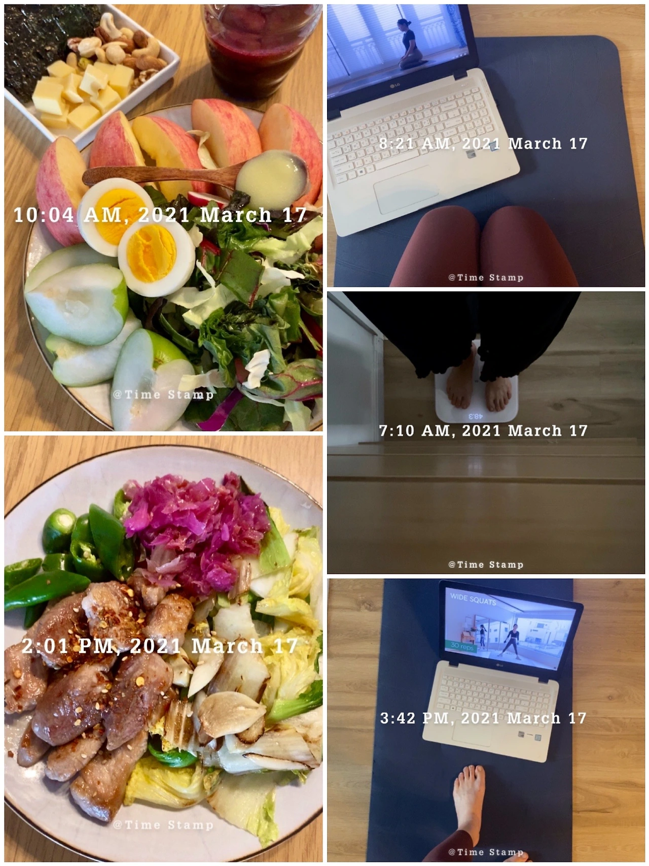 ✨기상 스트레칭 10분 공복 요가 30분. 태양 경배 20분 오늘은 용쓰는 서리 요가로. 오늘은 좀 덜 힘이 들었네. 태양 경배는 말해 무엇! 저녁 60분 홈트. 30분 유산소+골반 스트레칭+전신 폼 룰러. 오늘은 플랭크 대신 엉뽕 운동으로. 요즘 하체 라인이 전반적으로 줄어들고 있는데. 너는 줄면 맘 상해. 그럴 땐 운동이지. 운동 스케줄도 다시 생각을.