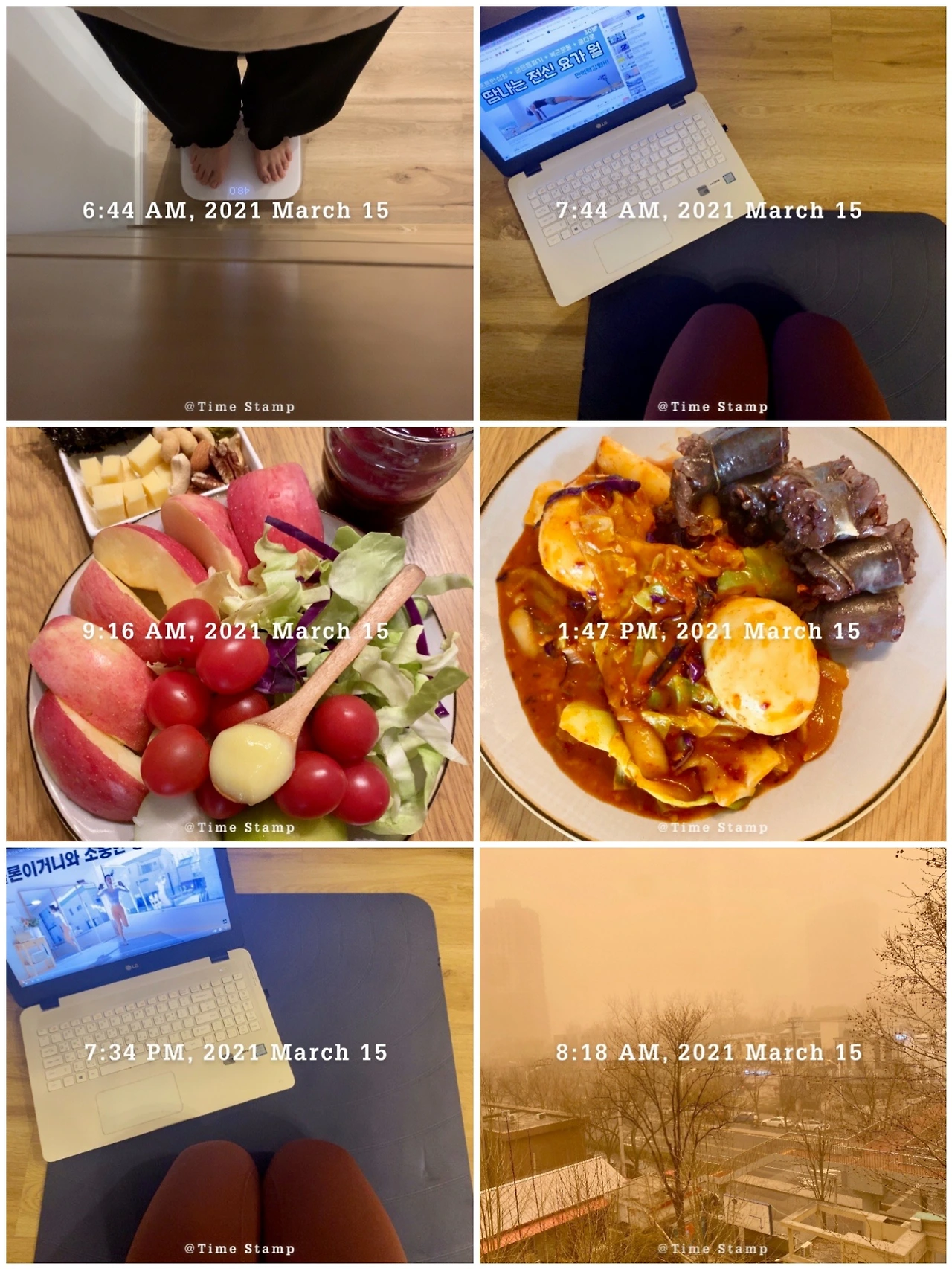 ⏰ Am 9:00-Pm3:00 _ 식사시간 이후 18시간 단식. 아침을 든든히 챙겨 먹은 후 점심에 약속이 있었으나 재난영화 촬영을 하는듯한 황사로 취소. 귀하게 모셔놓았던 떡 순에 삶은 계란 2개로 오후식을 마쳤다. 내겐 스낵이 필요하다. 결국 속세 과자에 손이... 내일을 에어 프라이기를 돌려야지.
