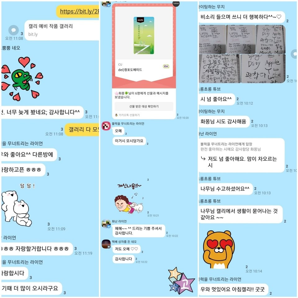 어제 1기를 끝냈습니다. 마지막 미션으로 서로의 닉네임을 캘리로 써보기로 했습니다. 사람들마다의 개성이 담긴 작품이 탄생했습니다.