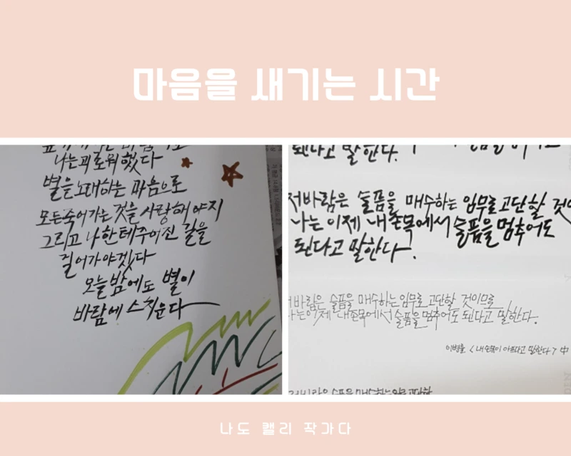 매일 《하루 딱 10분 진짜 독학 캘리그래피》 책 진도에 따라 각자 실습하고 인증하기(주말 제외)