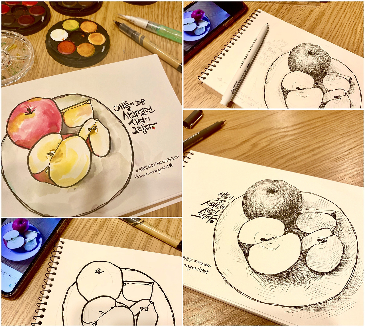 매우 오래된 이휘재의 유행어가 반짝 떠오릅니다. 고시 준비하듯 머리에 띠를 동여맬 것까지도 없어요. 뭐든 일단 시작을 해야 결과라는 열매를 딸 수가 있겠죠. 덜 익거나 딸 기시기를 지나 나무에서 또르르 떨어져 멍들고 썩을지라도 땅을 뚫고 나와 숨 한번 못 쉰 채 생을 마감한다는 것은 왠지 서글픕니다. 내가 사과인지 배인지도 모른 채 깜깜한 어둠 속에서 흙으로 돌아가게 된다니. 결심했다면, 시작을 해야 합니다. 일단은 햇빛 좀 보는 것으로 세계를 바꿀 사과가 되지 못하더라도 누군가의 하루에 상큼한 과즙을 내어줄 사과가 될 수는 있을 것 같아요. 제 생각으로 끝날지라도 이를 상상해보는 것만으로도 앤돌핀이 뿜 뿜 합니다.