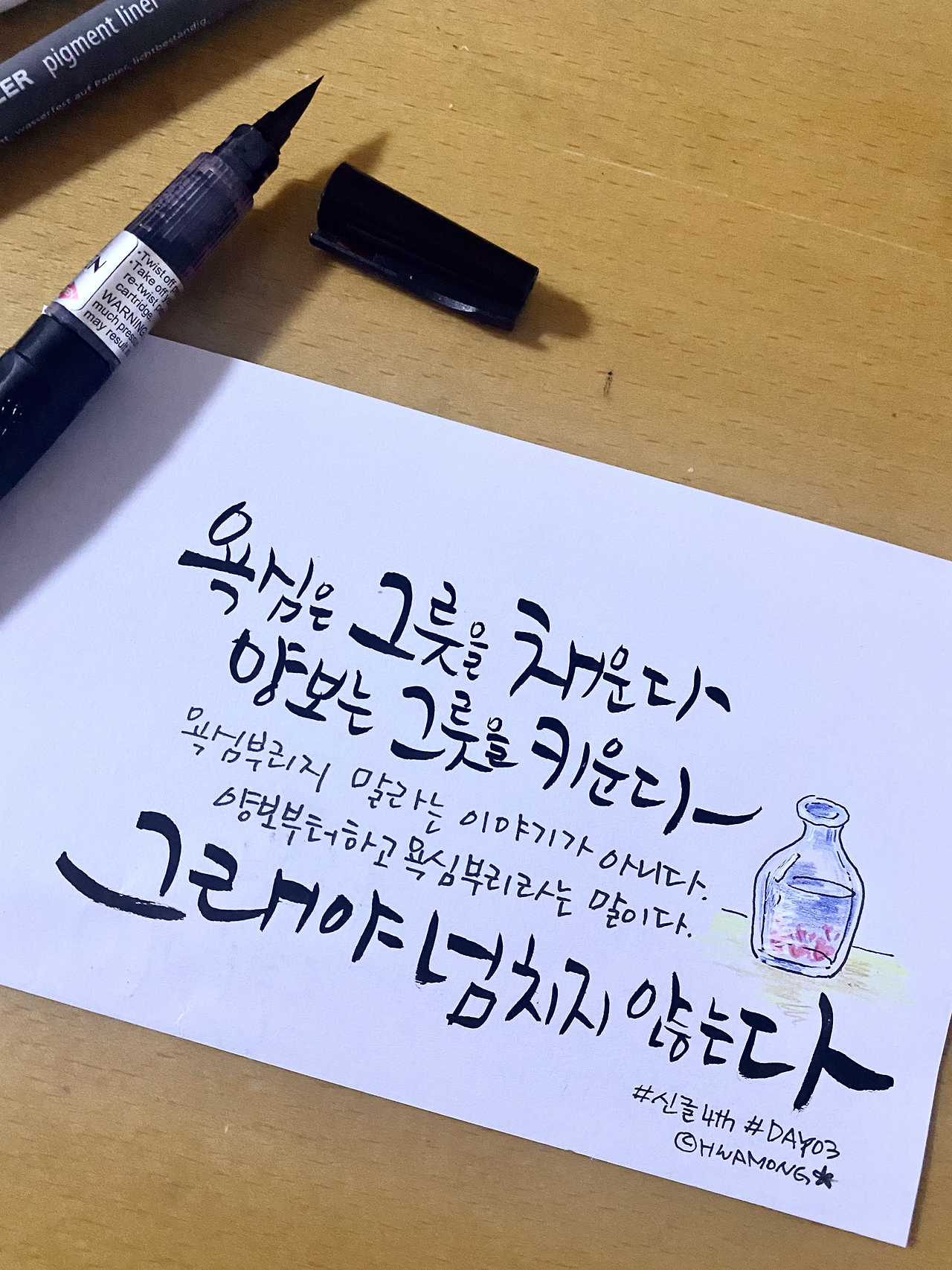 내게 있어 멋진 삶이란 무엇일까? 코로나 사태를 겪으며 정말 많은 것들을 뼈저리게 익혔다. 눈물로 배운 현실이다. 가슴으로 알게 된 소중함이다. 멋진 삶이란 혼자만의 것이 아니라는 것을. 밤새 베갯잇을 적히며 마음에 오롯이 새겨 넣었다. 물론 우리는 망각의 동물이라 이 마음이 얼마나 갈지는 나 또한 장담할 수는 없다. 오늘의 신글 과제는 올해의 버킷리스트를 작성해보고 이를 위한 실천 방안을 적어보는 것이다. 그러나 버킷리스트라는 것이 지금의 내게는 사치일지도 모른다.