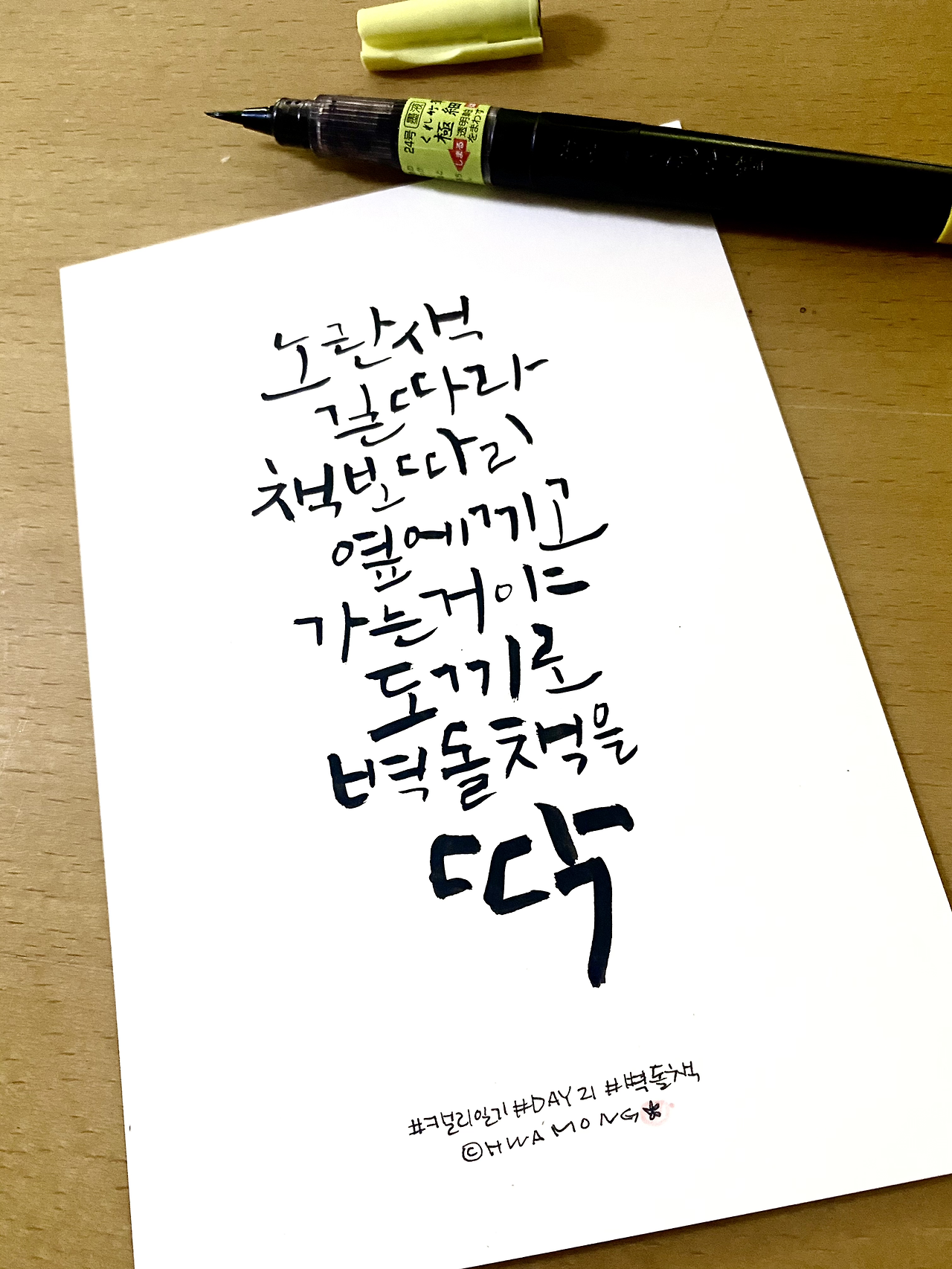 지인들에게 건강을 지키기 위해 먹는 것과 움직이는 것의 중요성에 대해 이야기하며 항상 강조하는 말이 있다. 중요한 것들은 시간이 남아서 하는 게 아니라 시간을 만들어해야 해야 한다고. 그래 책과 다시 가까이할 시간을 만들자. 삶에서 중요한 의미를 가지는 것들은 나 스스로 소중히 여기며 끌어안아야 하니까. 녹슬어가는 도끼는 꺼내 나를 깨워야 할 시점이다. 시야가 더 흐려지기 전에 말이다. 내 안에 공허한 울림이 더 커져버리면 길을 잃을지 모른다. 겁쟁이 사자의 모습으로 나를 살아가긴 뭔가 억울하니까. 도로시가 구두를 두드릴 때까지 기다릴 거 뭐 있나. 노란색 길 따라 책 보따리 옆에 끼고 가는 거야. 조금 무서운 단어이긴 하지만 도끼로 벽돌 책을 딱! 기다려!