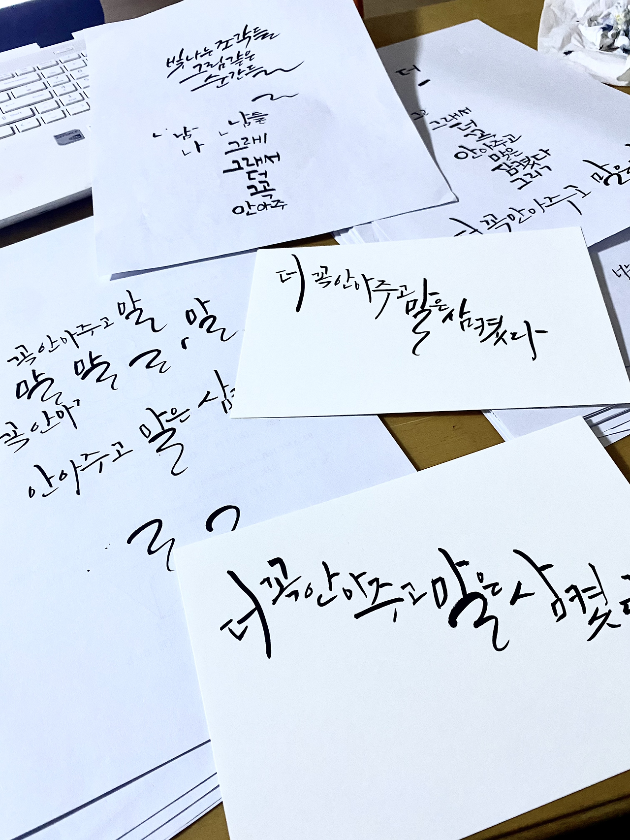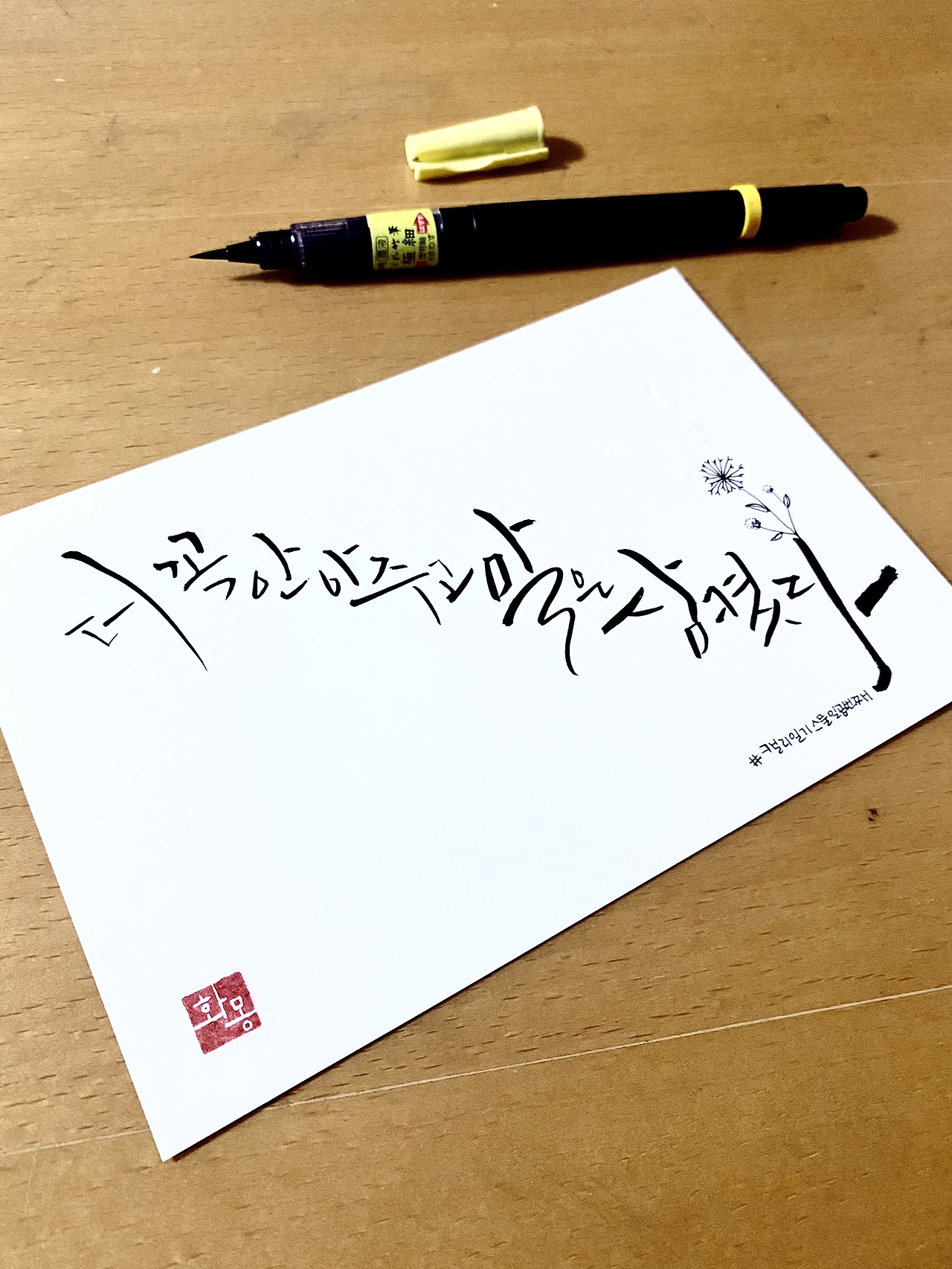 백일 넘겨 일기를 쓰고 이어 나의 캘리그래피로 이어나가고 있다. 그냥 일상다반사를 가볍게 끄적이는 일기 정도면 좋겠는데. 캘리그래피로 그려본다고 생각하니 괜한 힘이 들어가는 것도 사실이다. 나를 알고 있는 사람들은 내가 몇 시쯤이면 무엇을 하고 있을지 대충 짐작한다. 생활패턴 자체가 일정하고 변화가 거의 없기 때문이다. 감정은 봄을 맞이한 개구리처럼 널뛰는데 말이다.