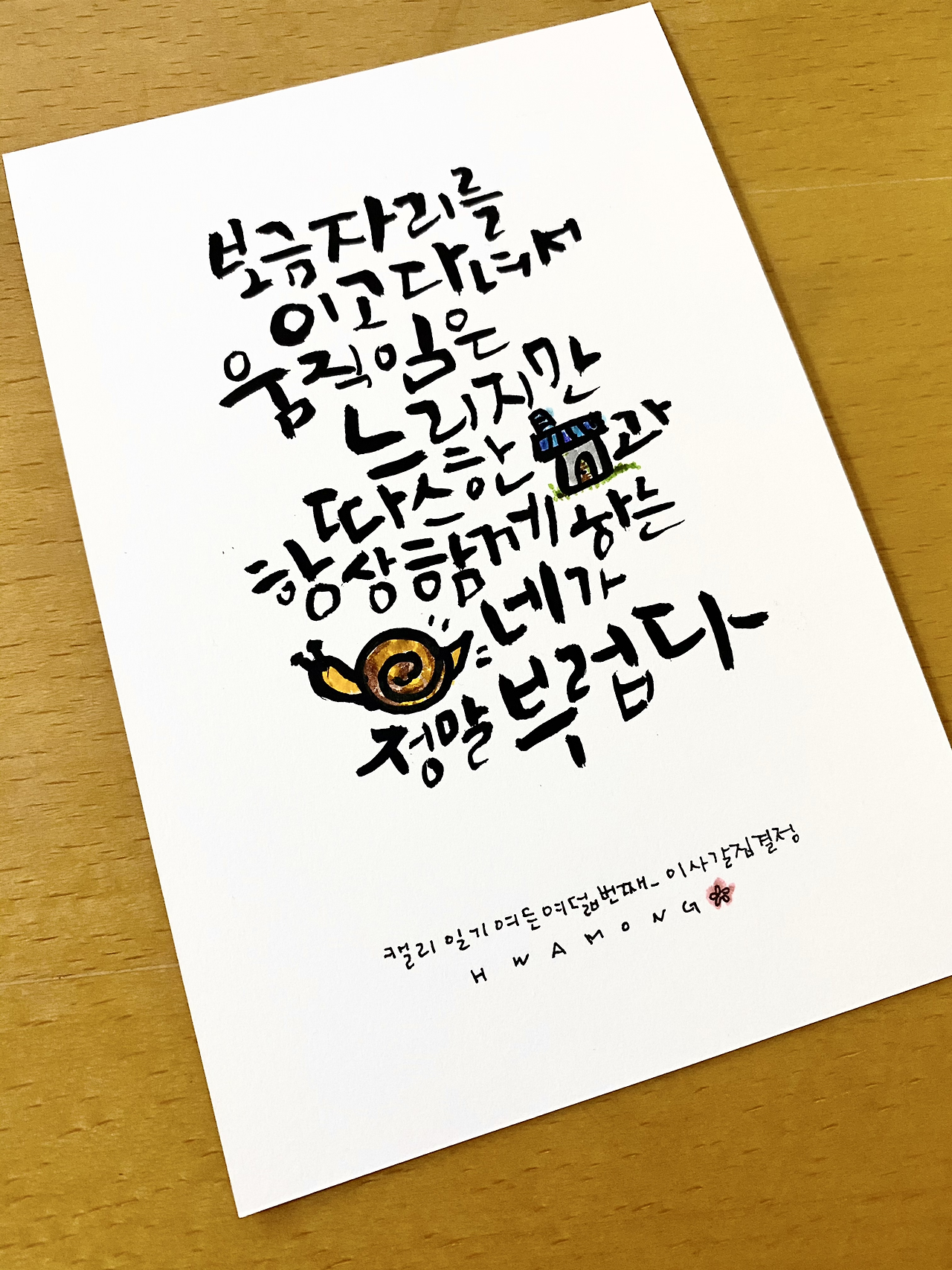 달팽이가 부럽다. 그 녀석은 집을이고 다닌다. 그래서 움직임이 느리지만 보금자리를 떠나지 않는다. 내게는 여러가지 좋은 이미지를 가득 품고 있는 달팽이. 이번 집은 뭔가 느낌이 좋다. 그래 쭈니도 졸업하고 우리 가족이 모두 잘 지낼 수 있을 거야! 믿는 대로 이루어질 테니~ 샤라랄수리수리마하수리 이루워져라~!
