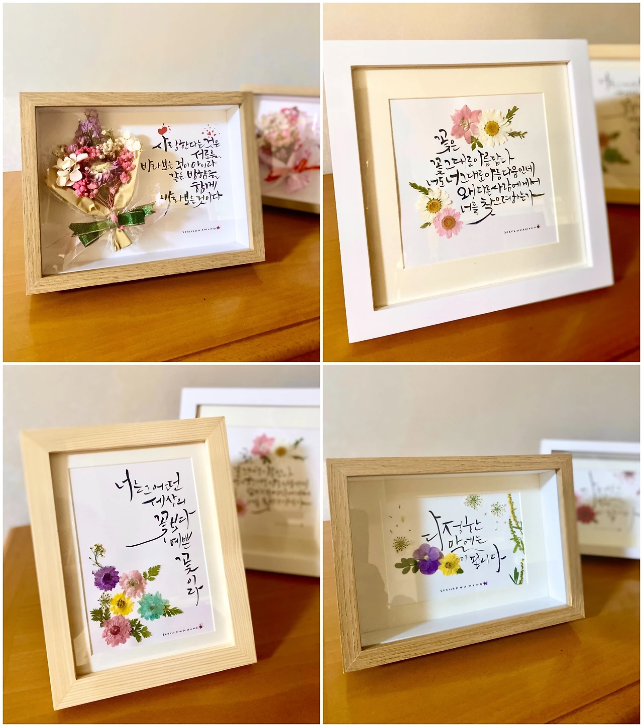 오늘은 클리 스마스 이브이자 작은 도서관의 생일이다. 7번째 개관 기념일. 작은 도서관의 수호천사들인 봉사자들이 12월 내내 준비한 날이다. 생일 떡도 있고 방문한 어린이들에게 줄 작은 선물도 준비. 기증한 책들로 장터도 열린다. 도서관의 수공예 모임에서 만든 아기자기한 소품들도 방문한 이들의 가방 안으로 쏙 들어갈 수 있게 만반의 준비를 하고 있다. 그 장터의 한편에 내 캘리 액자들이 걸린다. 며칠 전에 자리를 보고 액자들을 미리 어느 정도 걸어놓았다. 내 눈에는 부족한 부분들만 도드라지게 보이지만 내 자식 같은 캘리 작업들이다. 작품이라고 하기도 아직 부끄럽다. 발그레진 얼굴을 감싸며 한발 물러나 보니 2년 넘게 그려온 글씨가 고스란히 보였다. 그래도 조금씩 성장하고 있음을 느껴지니 참 좋다. 내가 그릴 수 있는 다른 느낌의 글씨를 두어 개 더 준비해서 도서관에 들어가려니 어찌나 떨리던지. JS 씨는 걱정하지 말라고. 완판 도전을 외치지만 내 마음을 걱정이 이만저만이 아니다.