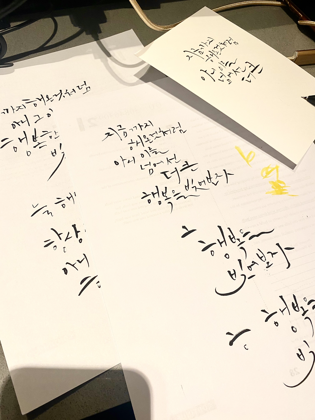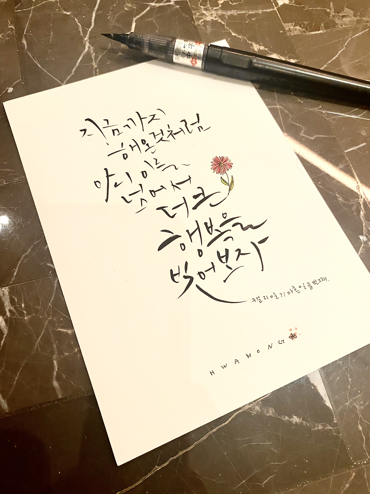 알람이 울린다. 일어나야지. 일어나. 일어나야 해. 화몽아... 눈 좀 뜨자. 속눈썹 끝은 바르르 떨고. 나도 모르게 오른손이 알람을 끄려 한다. 왼손이 나서 이를 말리고 내게 알린다. 그래 왼손 너 잘했어. 요즘은 왼손이 하는 일을 당당히 알려야 해. 비몽사몽 나 지금 뭐라고 하는 건지. 짐을 꾸리는 날에도 공복 운동은 해야 한다며 이 새벽에 일어나 어스름한 별빛에 가볍게 움직인다. 벽에 걸린 시계 추가 셀 수 없을 만큼 오가자 동은 트고 빛이 집안의 어둠을 조금씩 밀어붙인다. 이렇게 온 아침. 벨 소리가 울린다. 그들이 온다. 새로운 시작을 위한 첫 단추를 여민다. 가자. 같이하자. 쭈니야. 유니야. 우리 잘할 수 있어. 지금까지 해온 것처럼 아니 이를 넘어선 더 큰 행복을 빚어보자. 함께라면 뭔들~