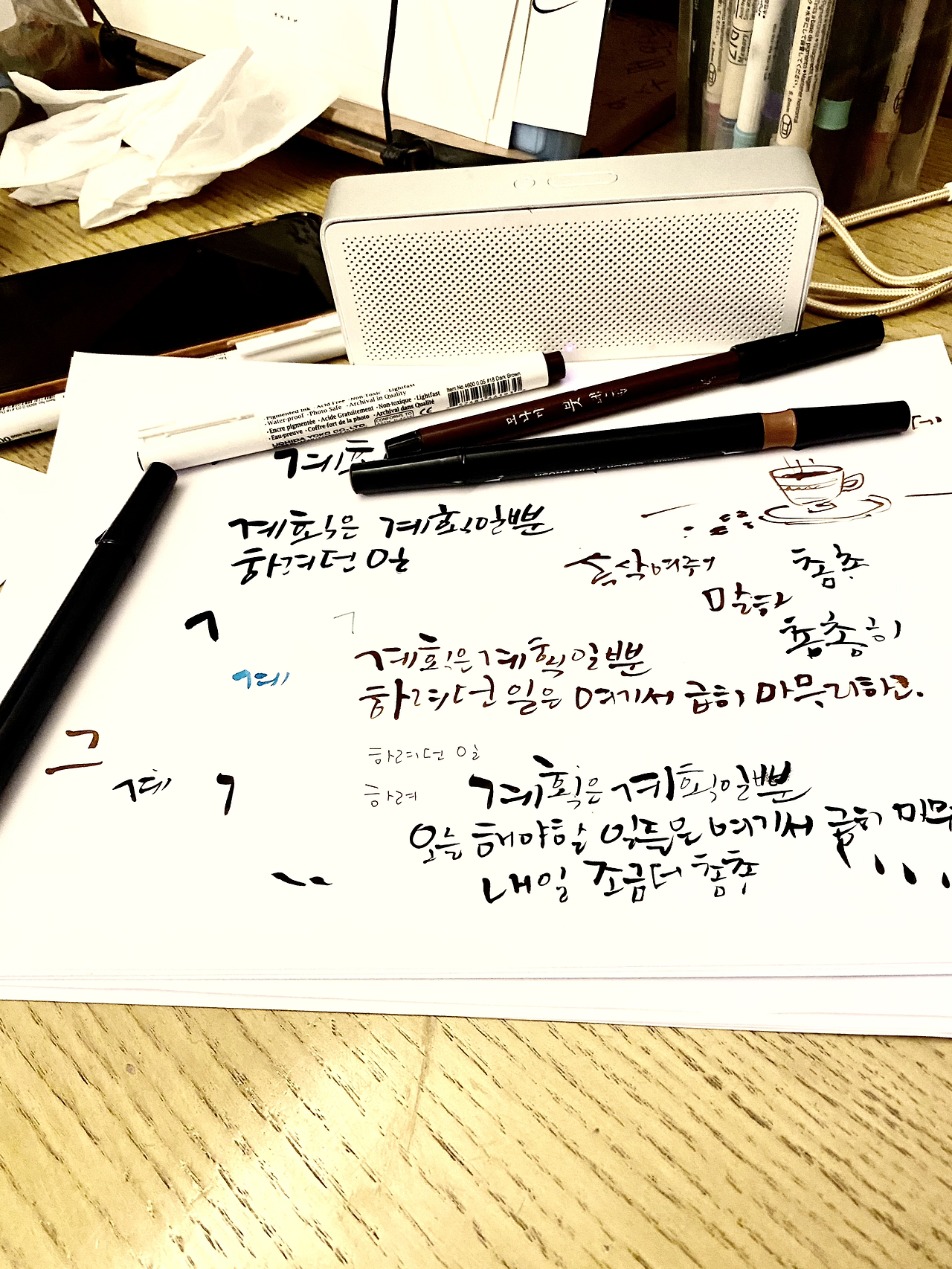 어제 불거진 사건을 오전 중에 마무리하고 쭈니와 유니 방을 정리할 계획을 가지고 하루를 시작한다. 대부분 그렇듯 계획은 어디까지나 계획으로 끝난다. 그래도 하려 했던 일을 시작은 해야겠다는 의지? 매일 조금씩이라고 정리하고 있다는 티를 내야겠다는 꼼수? 아이들 하교 시간은 다가오고 뭐라도 해보겠다고 소매를 걷어붙인다. 이런 행동들이 중요하다. 스스로에게 거는 주문이랄까? 정리의 'ㅈ' 정도는 한 듯. 거실에 아무렇게나 기대어 있어 보기 싫던 액자와 큰 상을 적당히 치우고 만들어진 공간에 작은 테이블을 쏙 넣는다. 냉장고 옆에 방치되었던 철제 받침들도 일단 부엌 쪽 베란다로 치운다. 현관을 두드리는 소리가 들려와 아이들 방의 옷들은 몇 벌 꺼내 접어 차곡차곡 올리다 말고 다시 대충 넣고 문을 닫는다. 하려고 했던 일들은 여기서 마무리하고 내일 조금 더 촘촘히 해보는 것으로. 그나저나 오늘 저녁은 뭐를 먹을까?