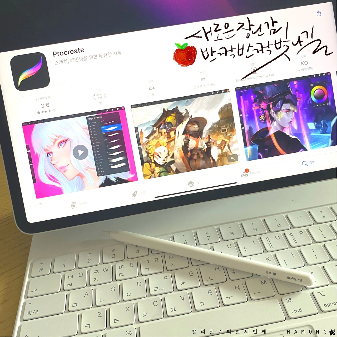 매직 키보드가 제일 먼저 도착. 다음날 펜슬이 띵똥 하고 문 앞으로. 그리고 대망의 아이패드 프로가 바로 오늘 아침 내게로. 비싼 만큼 값을 하는 게 사과사의 장난감. 하얀색 키보드의 자태가 영롱하다. 전에 사용하던 1세대 펜슬과는 감촉이 다른 펜슬. 말해 무엇 그냥 반짝반짝 빛난다. 한밤의 하늘 속에서 빛나는 단 하나의 불같은 아이. 화몽이라는 나의 이름이 각인되어 있는 아이패드와 펜슬. 히히~
