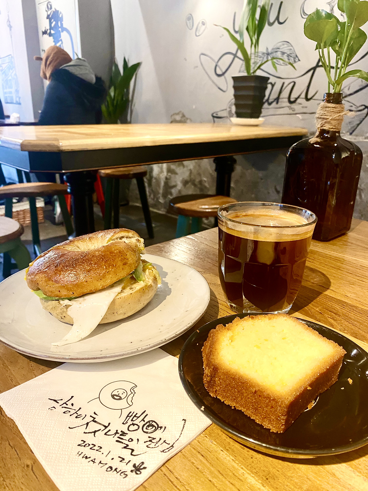 여행처럼 도착한 그곳. 세상에 그 흔한 아보카도 계란 베이글 샌드인데. 이렇게 맛있을 수가 있나? ㅎㅎㅎ