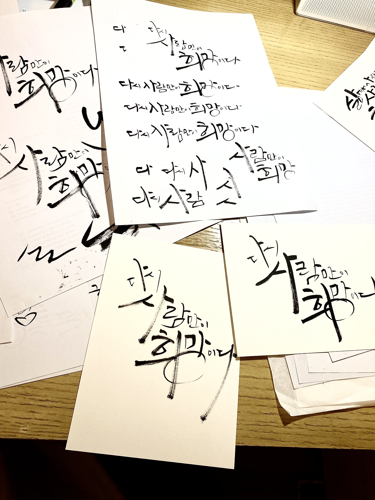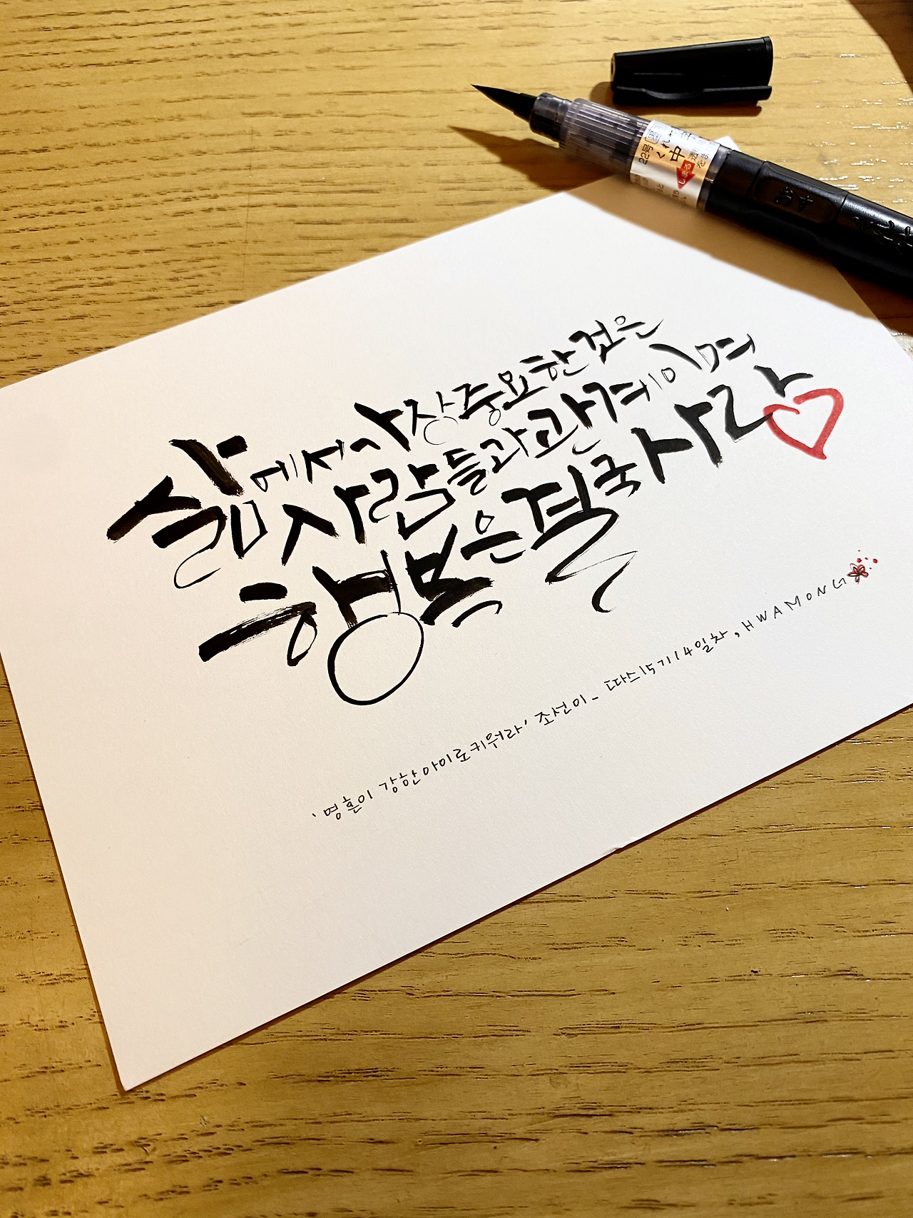 요 몇일 무슨 일들이 있었던가? 글씨 연습시간이 통 없었다. 사실 시간이 없단건 핑계일지도. 없는 시간을 쪼개서 그리고 또 그려내도 모자랄텐데 말이다. 언젠가 캘리애님의 인스타라방에서 쏟아지는 질문에 답을 해줬다. 올라오는 질문들은 조금씩 다르지만 결국 하나였다. 어떻게 하면 글씨를 잘 쓸수 있냐는 것. 캘리애님의 답은 짧고 정말 굵었다. 연습하세요. 연습만이 실력이 늘길이며, 늘지 않아도 하세요. 계단을 올라갈 때까지 버티어야 한다는 것. 난 얼마나 버티고 있는가? 연습은? 잠시 이 두 질문을 내게 던져본다. 확 풀어진 계란처럼 축 늘어져 통 연습을 못했다. 오늘은 좀 풀어보자. 한두줄 그리는 손이 영 딱딱하다. 휴~~~~ 그리자 그려~ 손끝이 리듬위에 올라갈 때까지. 오늘안에 되려나?