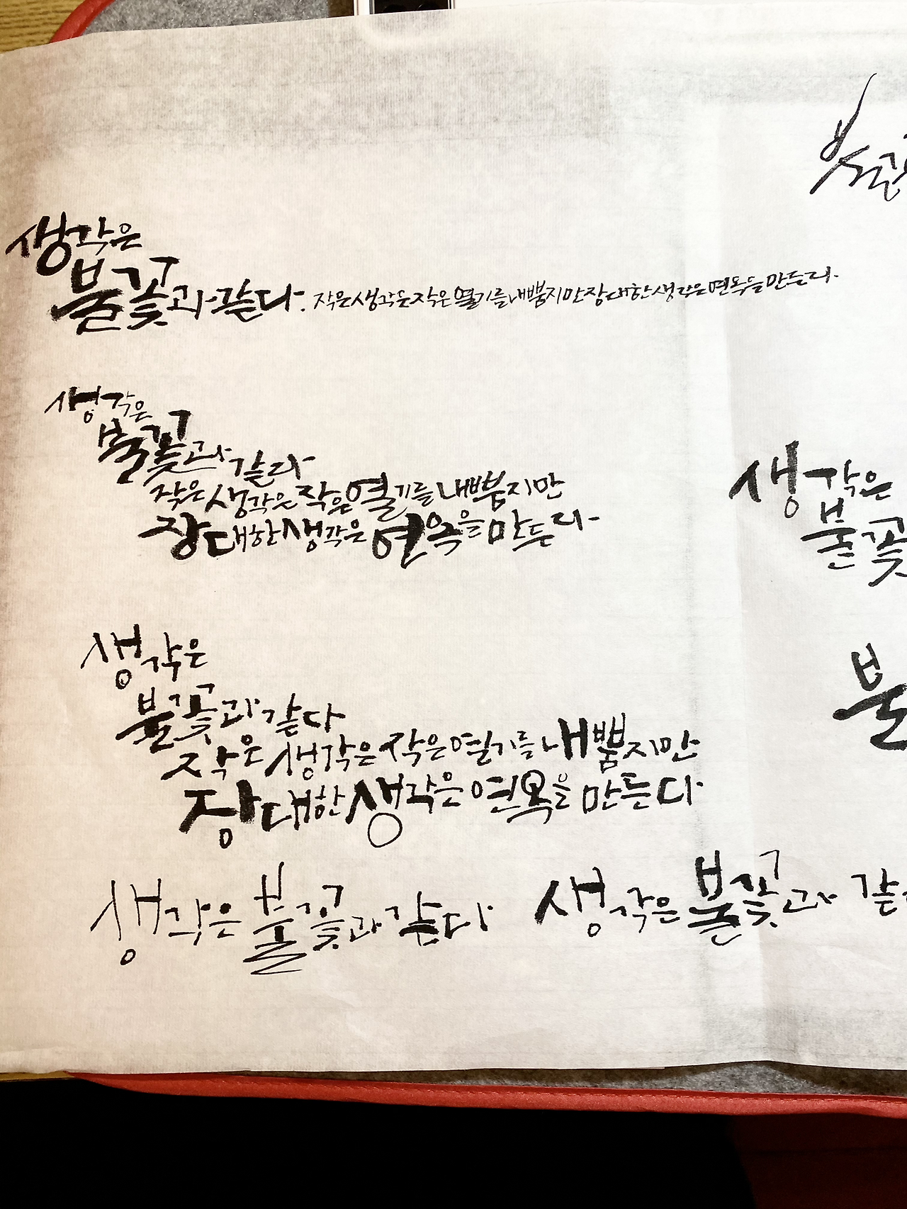 춘절 연휴 전에 받아보고 싶어서 서둘러 구매했던 캘리 책들이 도착했다고 문자가 왔다. 중국 ems로부터… 세관에 걸렸으니 찾아가라고. 연휴 기간 동안 꽁꽁 닫았던 곳이 어제부터 정상 업무. 자전거를 타고 가려다 도리도리. 전철을 타고 갔더니 역의 모양이 영 이상하다. 대체 지도가 알려주는 길이 어디란 말이냐!!! 한참을 헤매다 보니 어쩜! 고가도로가 있다니! 이래저래 찾아가니 절차를 알 수가 없다. 이거 웬걸 생각보다 친절하다. 접수하고 기다려 내 우편물을 만나니 이리 반가울 수가. 게다가 세금도 안 받는다. 아싸! 근처에서 커피나 한잔하고 가자며 찾아간 커피 맛집은 영업을 안 하고 고픈 배와 허기진 마음을 여미기 위해 뚜레쥬르라도 들어간다. 세상 맛없는 커피와 빵. 햐… 앞으론 이러지 말자. 맛없는 것으로 허기를 달래는 것만큼 나 자신이 안쓰러울 때도 없으니. 건강을 위해. 맛있고 즐겁게!
