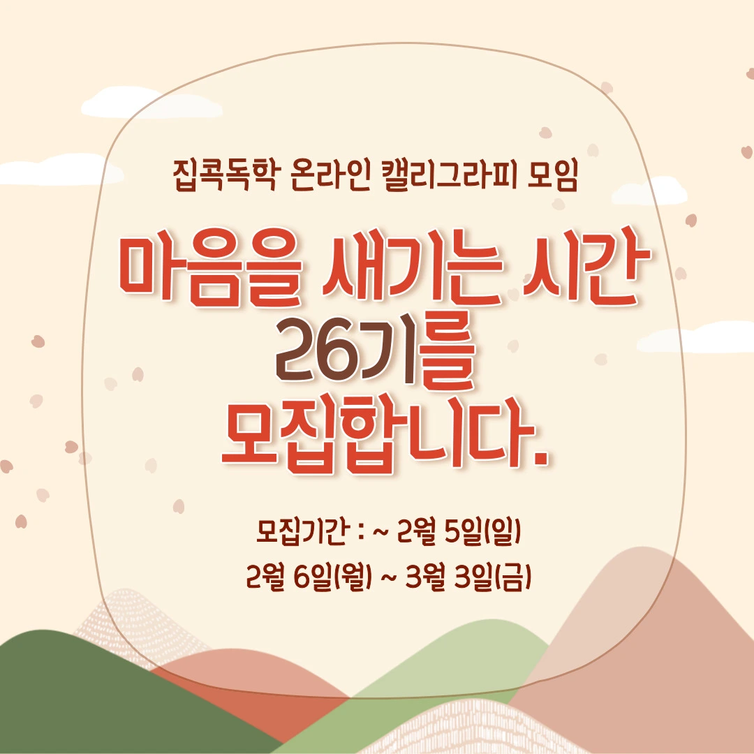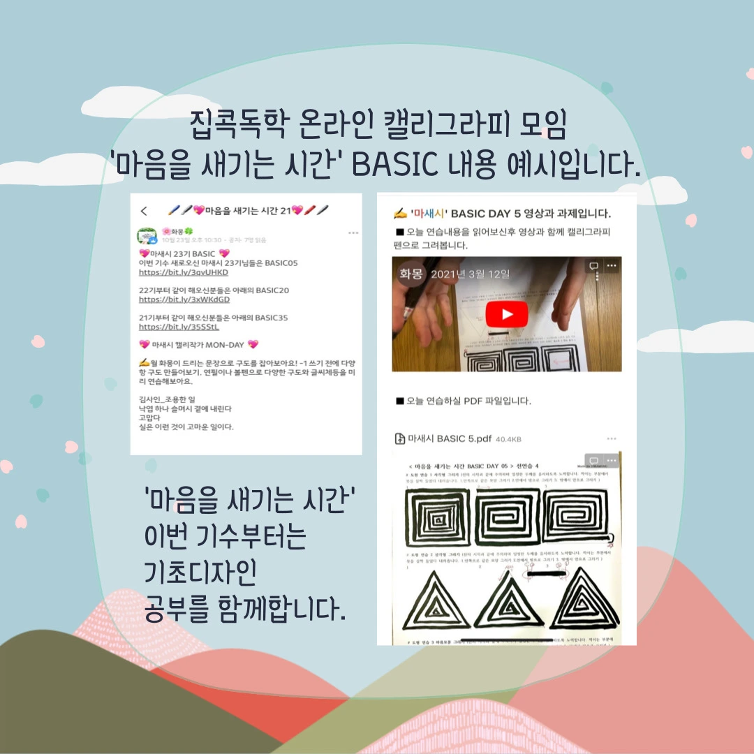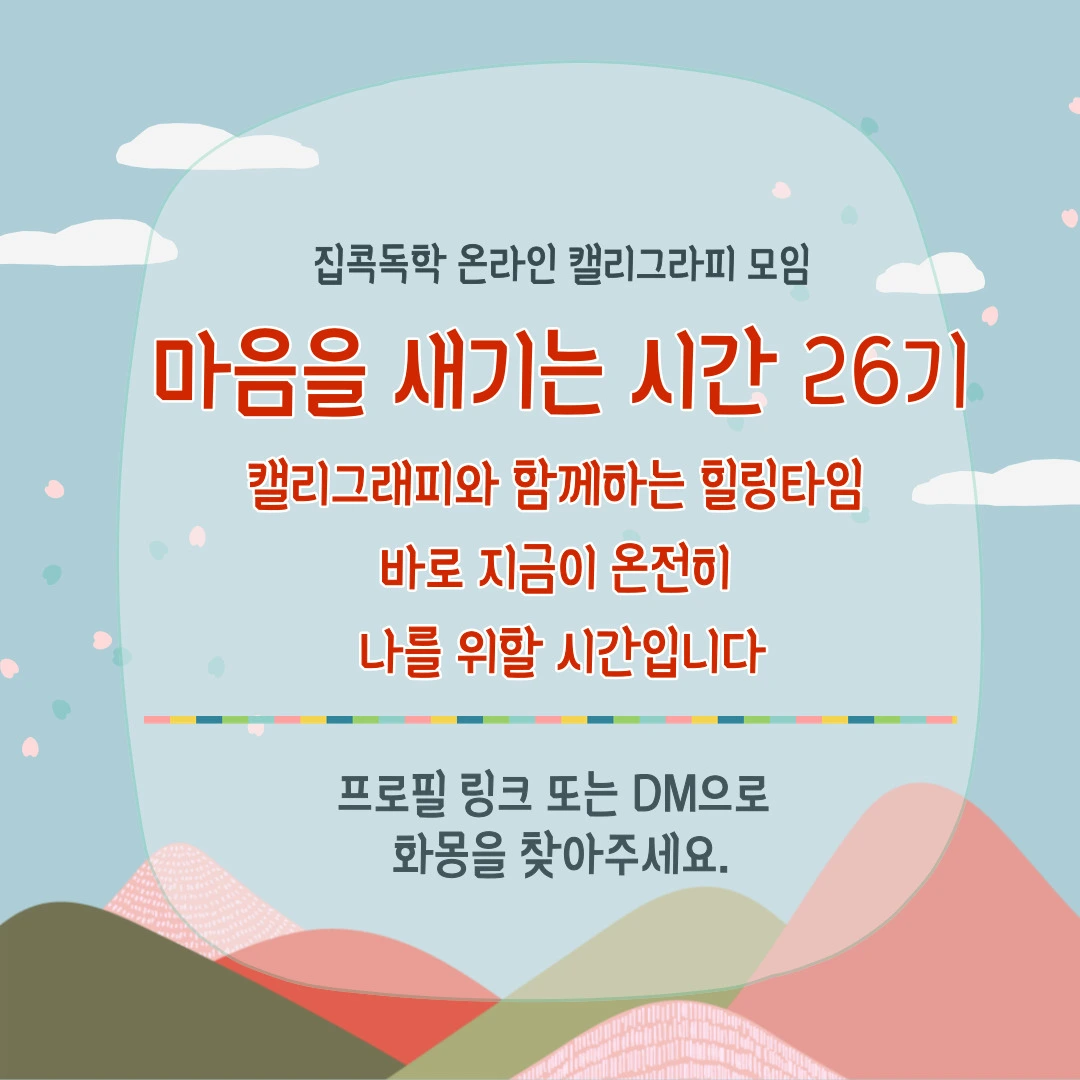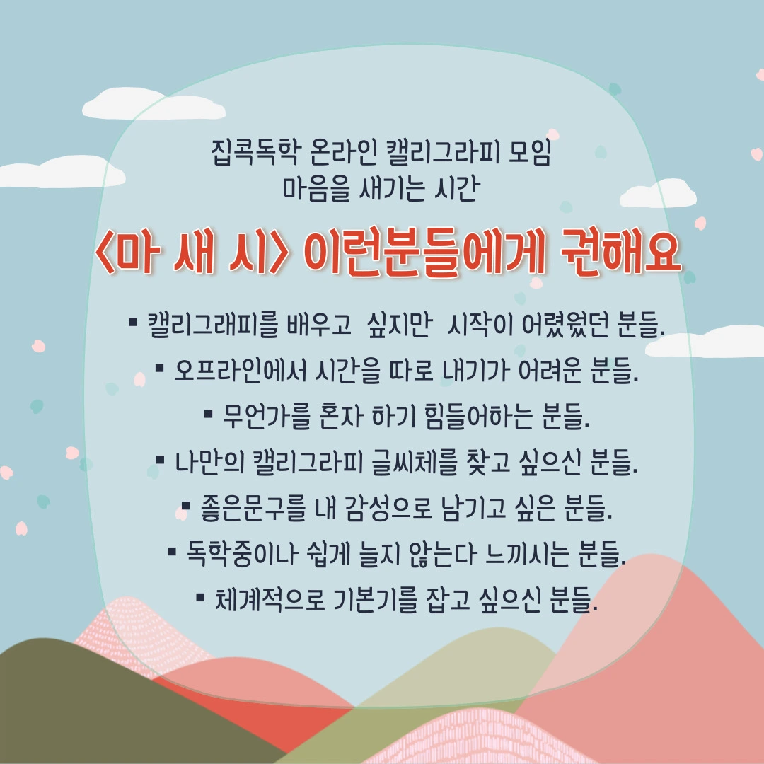온라인에서 만나는 독학캘리 모임 ‘마을을 새기는 시간’이 그 스물여섯 번째 만남을 준비합니다.
