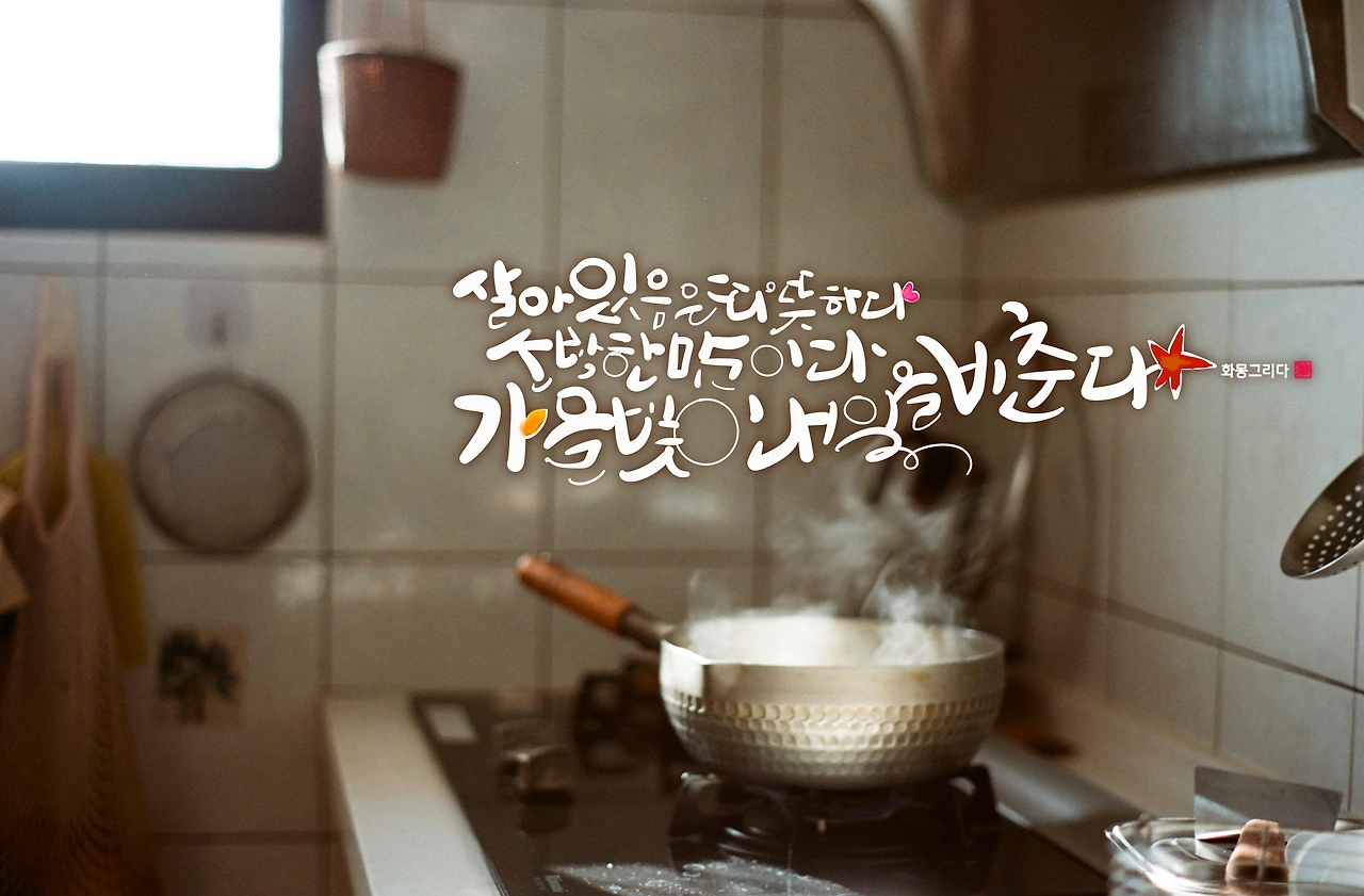삶은 결국 몸의 힘 위에 세워진다. 몸을 일으키는 건 마음이다. 나의 공간에서 그 안을 가득 채운 시간 속에서 나는 다짐한다. 매일을 버티며 내일을 만난다. 계절의 끝이란 없다. 영원이란 더욱더 없다. 그럼에도 나는 간다. 새로운 시작을 향해. 찡긋 웃는다. 맛있다. 그것이면 충분하다. 살아있음은 따스하다. 소박한 맘이다. 가을빛이 내일을 비춘다. 그리고 나는 안다. 빛과 그림자가 교차하는 이 부엌에서, 오늘의 작은 숨결이 내일의 생명을 지켜낸다고.