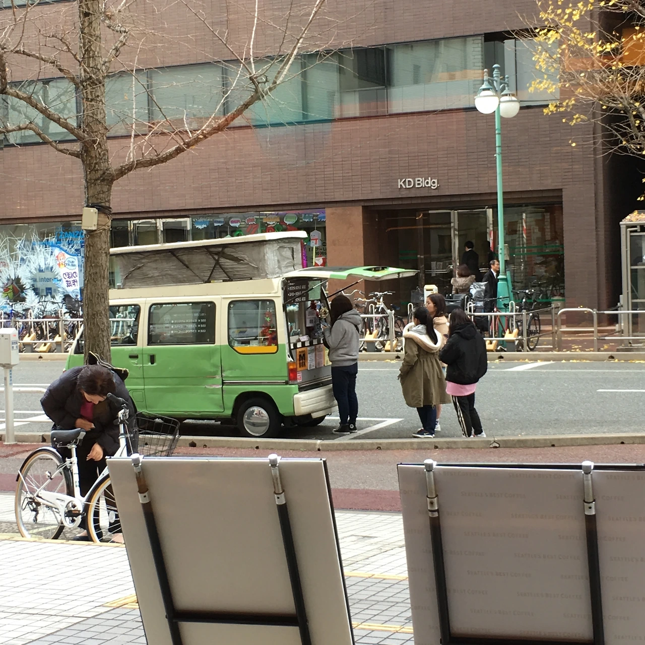후쿠오카 시애틀 베스트 .. 카페에 앉아 있는데, 거리에 커피차가 와 있다.