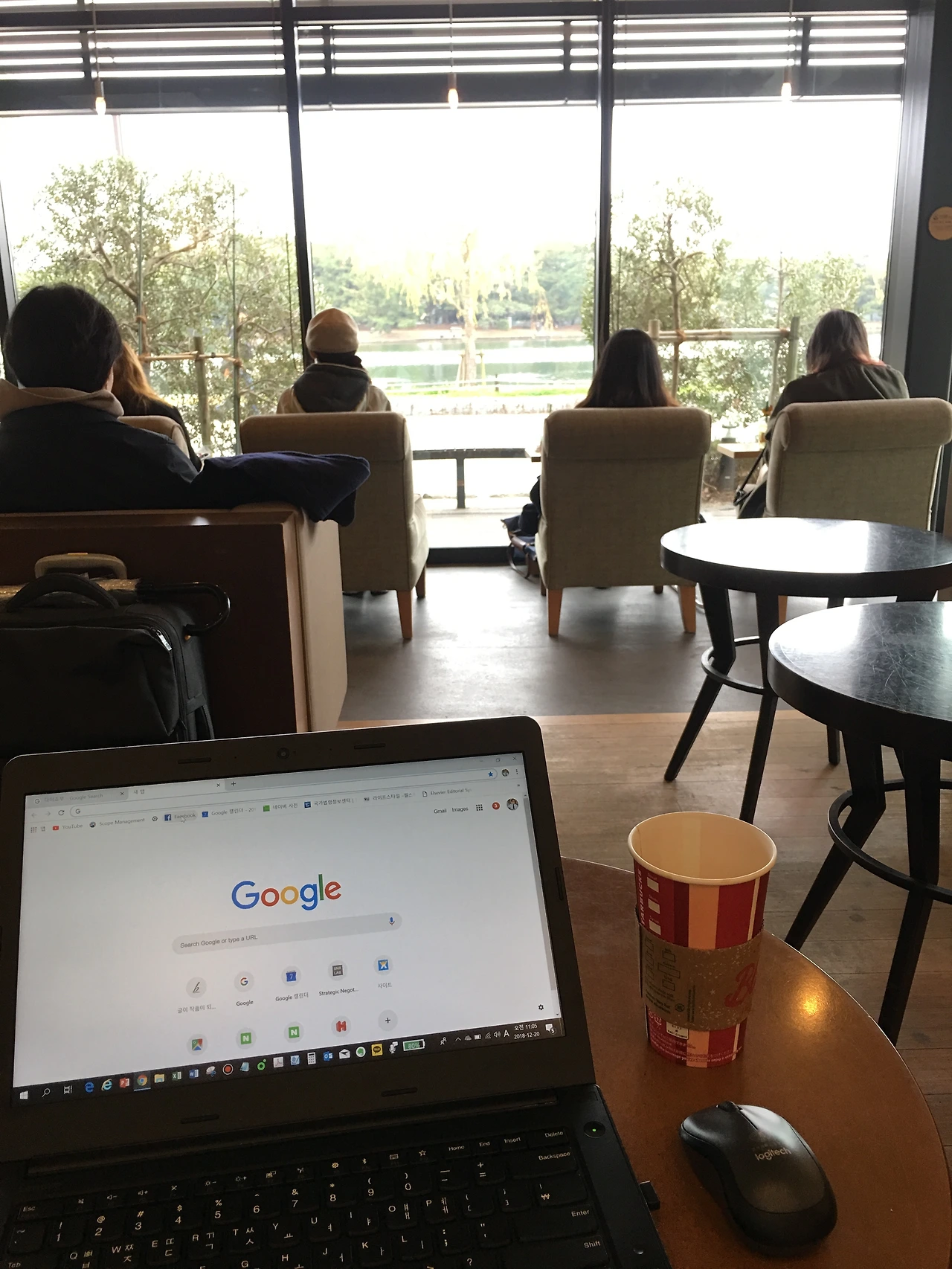 스타벅스 안에서 나는 계속 원고 작업도 했다. 사람들은 창밖을 본다.