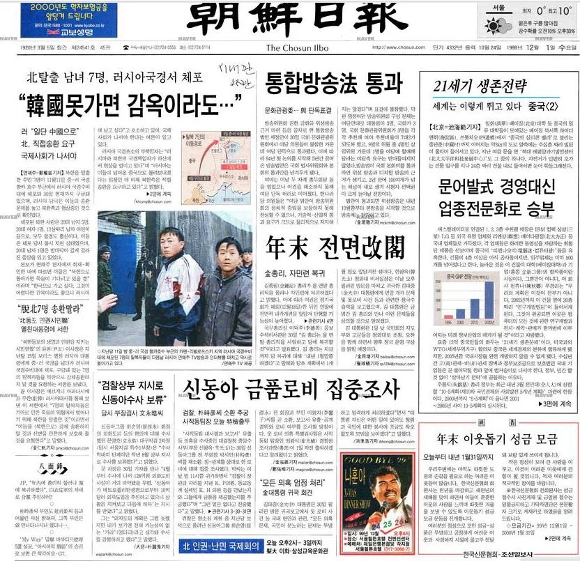 1999년 12월 1일 조선일보 1면 발췌 / 출처 : 네이버 뉴스 라이브러리