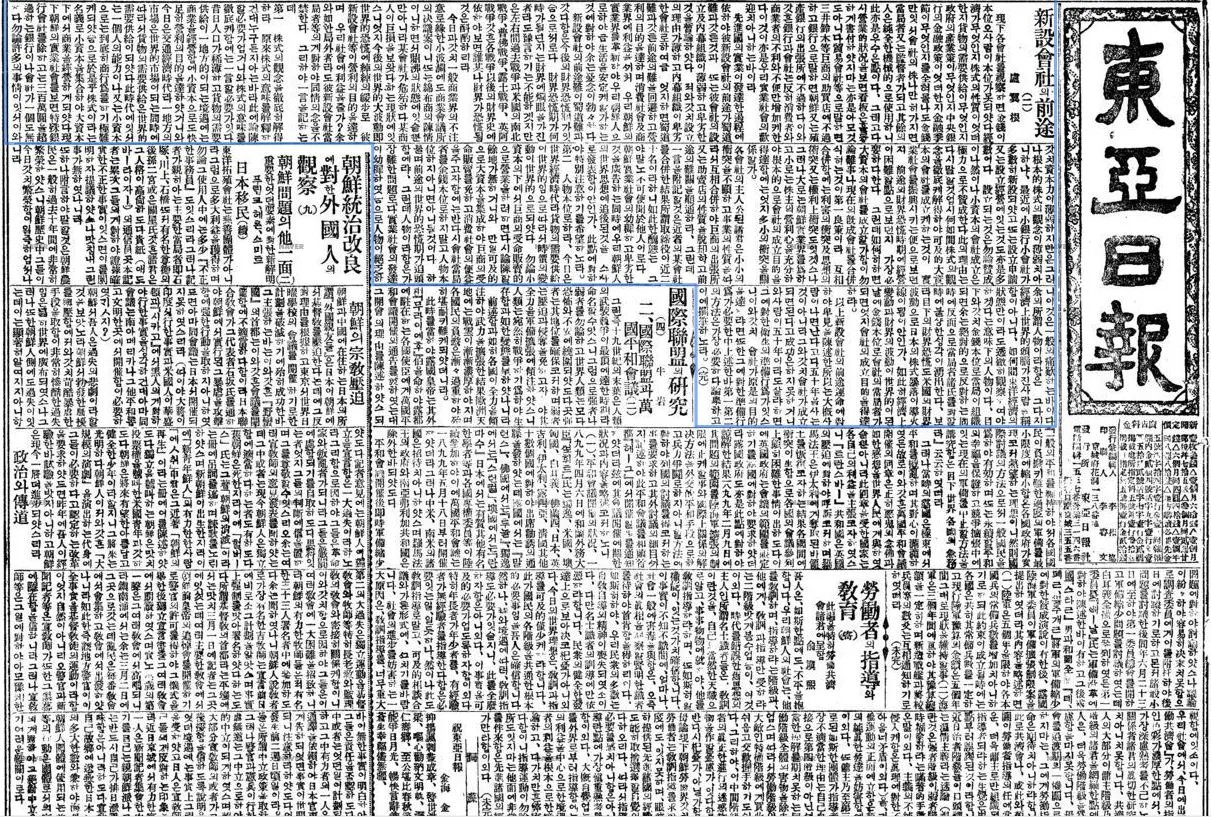 1920년 5월 1일 동아일보 1면 발췌 / 출처 : 네이버 뉴스 라이브러리