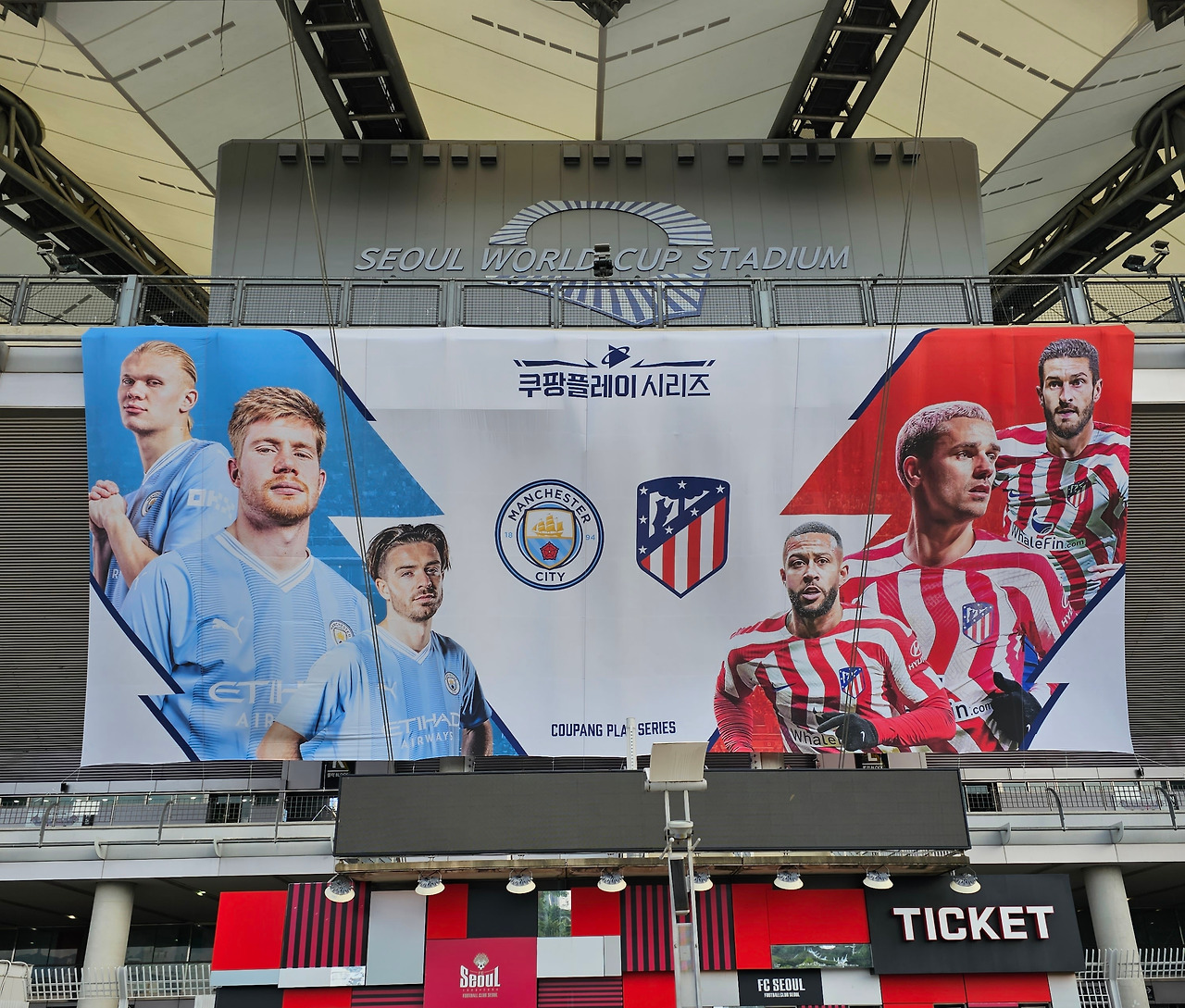 마침 여름휴가를 가야 하는 기간이었는데, 가족들의 휴가계획은 따로따로 있었기에 그렇다면 나는 쿠팡플레이 시리즈로 무더운 여름을 즐겨보려 한다. 첫 번째 무대는 K리그 팬들의 투표로 선정된 K리그 베스트 11과 스페인 라리가 강호팀 아틀레티코 마드리드 (이하 ATM) 대결로 시작한다. 두 번째 무대는 22-23 시즌 트레블 달성한 맨체스터 시티 (이하 맨시티)와 ATM의 내한 경기였다. 두 무대 모두 직관 가고 싶었지만 자금 사정상 불가능하기에 다시는 없을 것 같은 기회의 맨시티와 ATM의 대결만 치열한 티켓팅을 통해 어렵게 한자리 구했다. K리그 대전은 쿠팡플레이를 통해 내 방에서 시원한 선풍기와 함께 즐겼다.