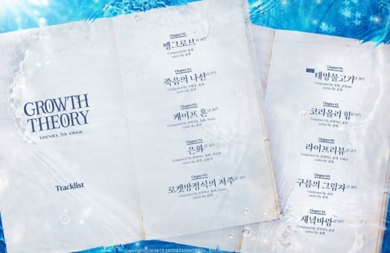 <END THEORY>에서는 끝, 마지막에 관련된 이야기를 했다면 <GROWTH THEORY> 에는 성장에 관련된 노래가 총 10곡이 수록되었다. 그냥 일반적인 아이돌이나 가수면 타이틀 곡 외에는 잘 안 듣는데 윤하는 언제나 나의 기대치를 200% 채워주는 뮤즈 이기 때문에 언제나 모든 리스트를 리스닝하는 홀릭스이다. 개인적으로 노래의 배합은 가사와 멜로디가 6:4 비율이 돼야 좋다고 생각한다. 가사가 이해되고 읽는 재미가 있어야 멜로디가 읽히고 노래로서의 역할을 한다고 본다. 윤하는 싱어송라이터이기에 대부분 곡을 자신이 작사작곡한다. 다양한 소재와 언어들을 주제로 섬세한 가사 읽는 재미가 너무 좋다.