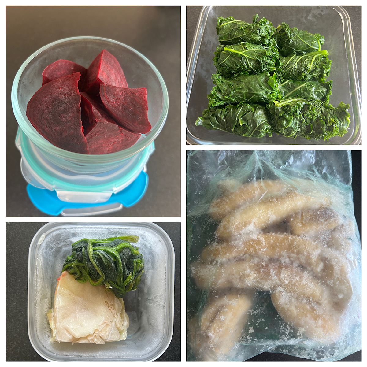 매번 준비하는 것이 번거롭지 않게 날을 잡아서 녹색 잎야채나 비트는 살짝 데쳐둔다. 잎야채는 양이 많이 줄어들어서 보관이 쉽고 냉동 보관도 편하다. 무엇보다 속이 한결 편안하다. 한 번에 갈아 마시기 좋은 양으로 소분해 착착 담아두고, 비트는 삶은 뒤에 마찬가지로 작게 썰어둔다.