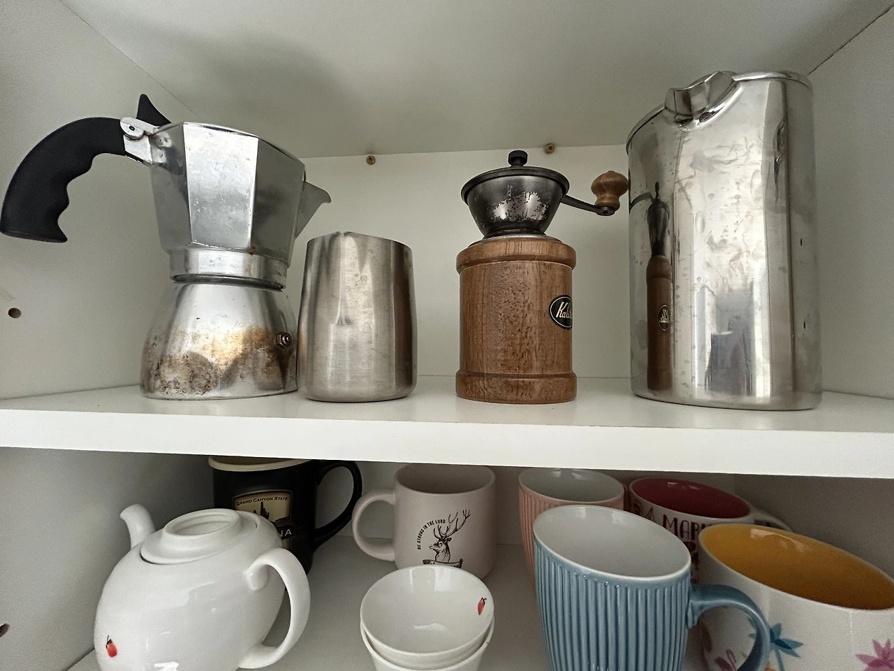 오피스에 출근할 때에는 유용하게 곧잘 쓰던 프렌치 프레스와 커피 갈 때 쓰는 핸드밀도 이제는 장식 그 이상도 이하도 아니어서 정리하기로 한다. 핸드밀은 대학 시절부터 쓰던 추억 진하게 묻어있는 물건이라 왠지 아쉬웠는데 (충분히 모셔둔건지) 이제는 정리해도 괜찮겠다는 마음이 들었다.