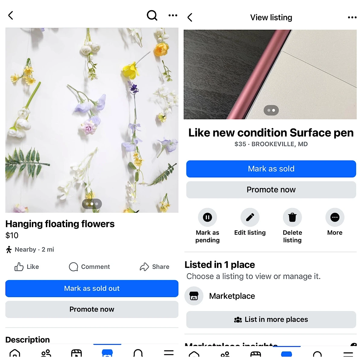 틈틈히 정리해왔다고 자부하지만 여전히 버리기에는 아깝고, hoxy 언젠가 쓸지도 몰라서 남겨둔 물건들이 있다. 결혼식 장식에 썼던 꽃 장식과 surface pro에 쓸 수 있는 필기용 스타일러스 펜을 페이스북 마켓플레이스에 올린다. 상세한 설명을 올리고 픽업 위치, 가격 협상을 할 여지가 있는지, 배송은 해줄 수 있는지 등의 옵션을 선택하여 게시한다.