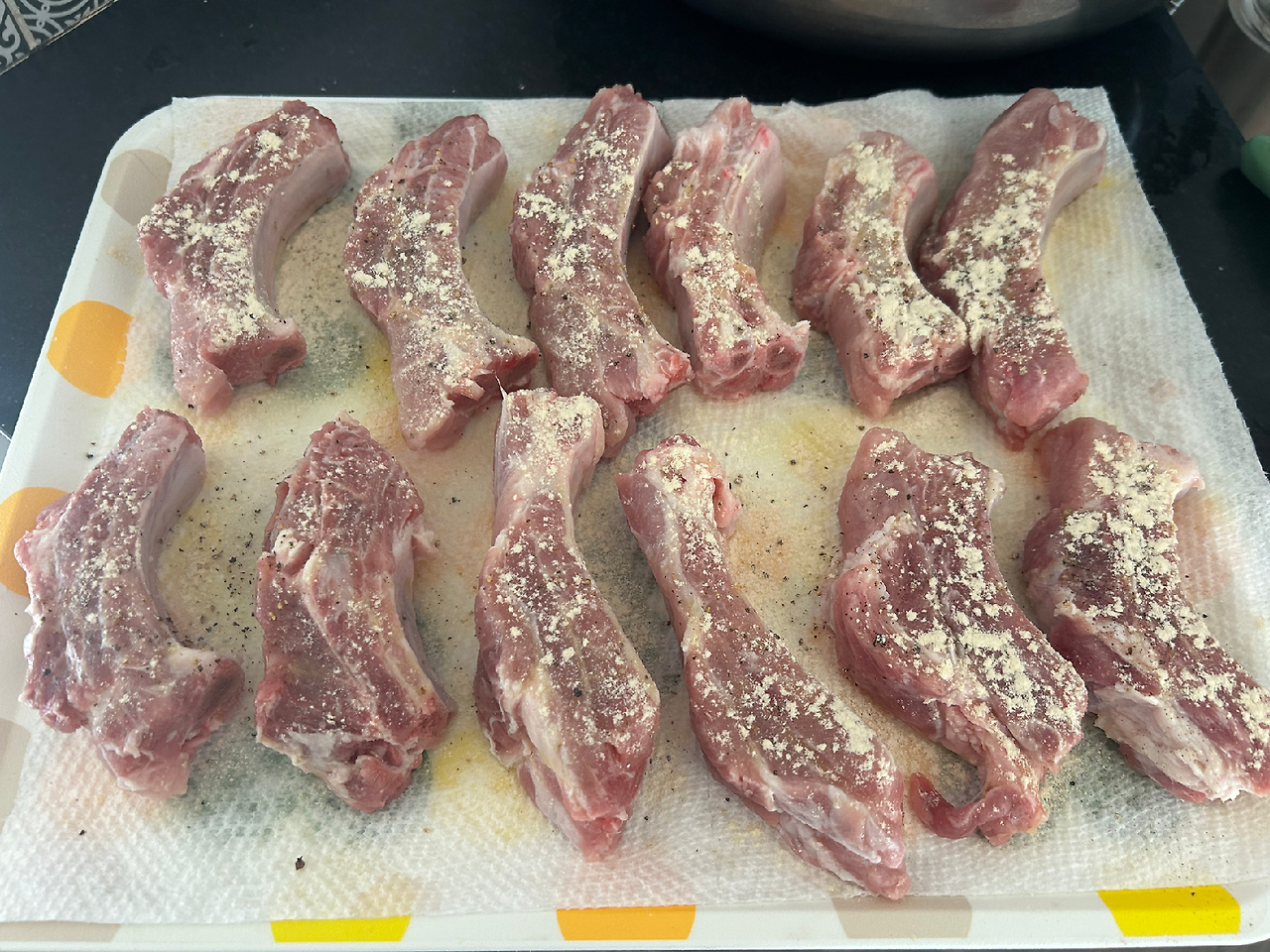 나의 원픽 애피타이저는 차돌박이 야채말이. 너무 배부르지 않으면서도 한두 개씩 집어먹기 좋은 애피타이저. 팽이버섯과 부추를 차돌박이에 감싸 말아서 찌기만 하면 되고, 간장과 발사믹을 적당히 섞은 소스를 곁들이면 완성.