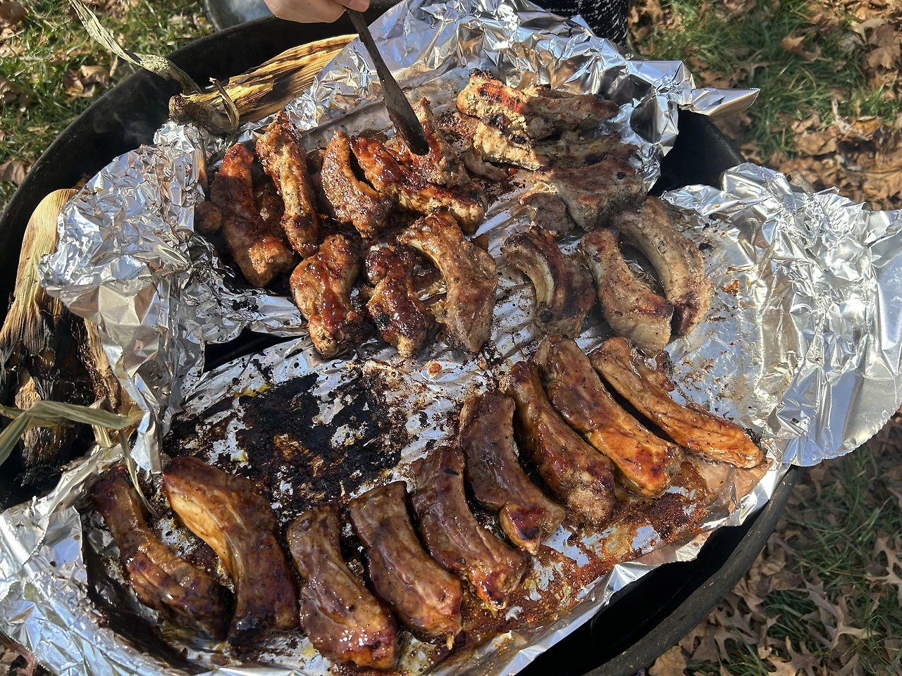 메인 요리는 그때그때 다른데 소고기- 토마호크나 T본 스테이크, 혹은 돼지고기- 등갈비 구이, 수육, 항정살, 삼겹살 등으로 푸짐하게 준비한다.