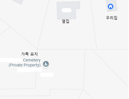가장 의아했던 건 구글 지도에 표시된 '가족 묘지'였다다. 우리 집 근처에 묘지가 있다니? 아무리 찾아봐도 집들 뿐인데 지도가 업데이트가 안된거려나 했었다. 알고보니 옆집 뒷마당이 바로 그 묘지와 연결되어 있었다.