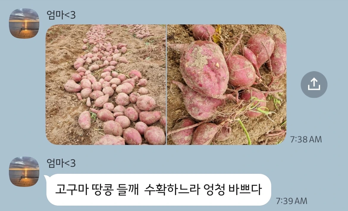 그러면서도 언니가 부모님이 농사지은 야채며 과일, 김치를 싸들고 간다는 메시지를 볼 때마다 배 아파했던 것 같다.