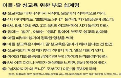 경이 관계교육연구소 손경이(51) 대표 외 다수의 성교육 전문가들은 “성기에 대한 명칭을 정확히 사용해야, 성에 대한 주체성과 용기를 기를 수 있다”라고 말한다. 어릴 때부터 부모들이 올바른 생식기 명칭을 사용하게 되면 TV에서 야한 장면을 함께 보더라도 헛기침만 하지는 않을 것이다. 성교육은 태어나자마자 시작해 일상에서 지속해서 이루어져야 하는데, 성교육은 단순히 성 지식을 전달하는 것뿐 아니라, 부모가 아이의 몸을 대하는 방식과 태도를 모두 포함하기 때문에 부모들의 성인지 감수성을 키우는 것 또한 중요한 역할 중에 하나라고 생각한다.