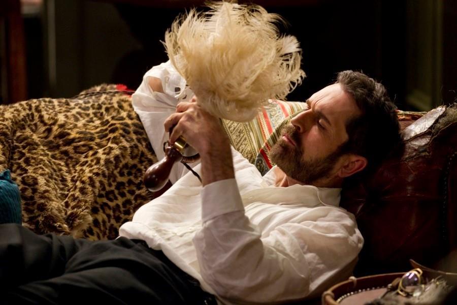 영화 '히스테리아'의 주인공 모티머 그랜빌이 먼지털용 기계를 들고 있는 모습