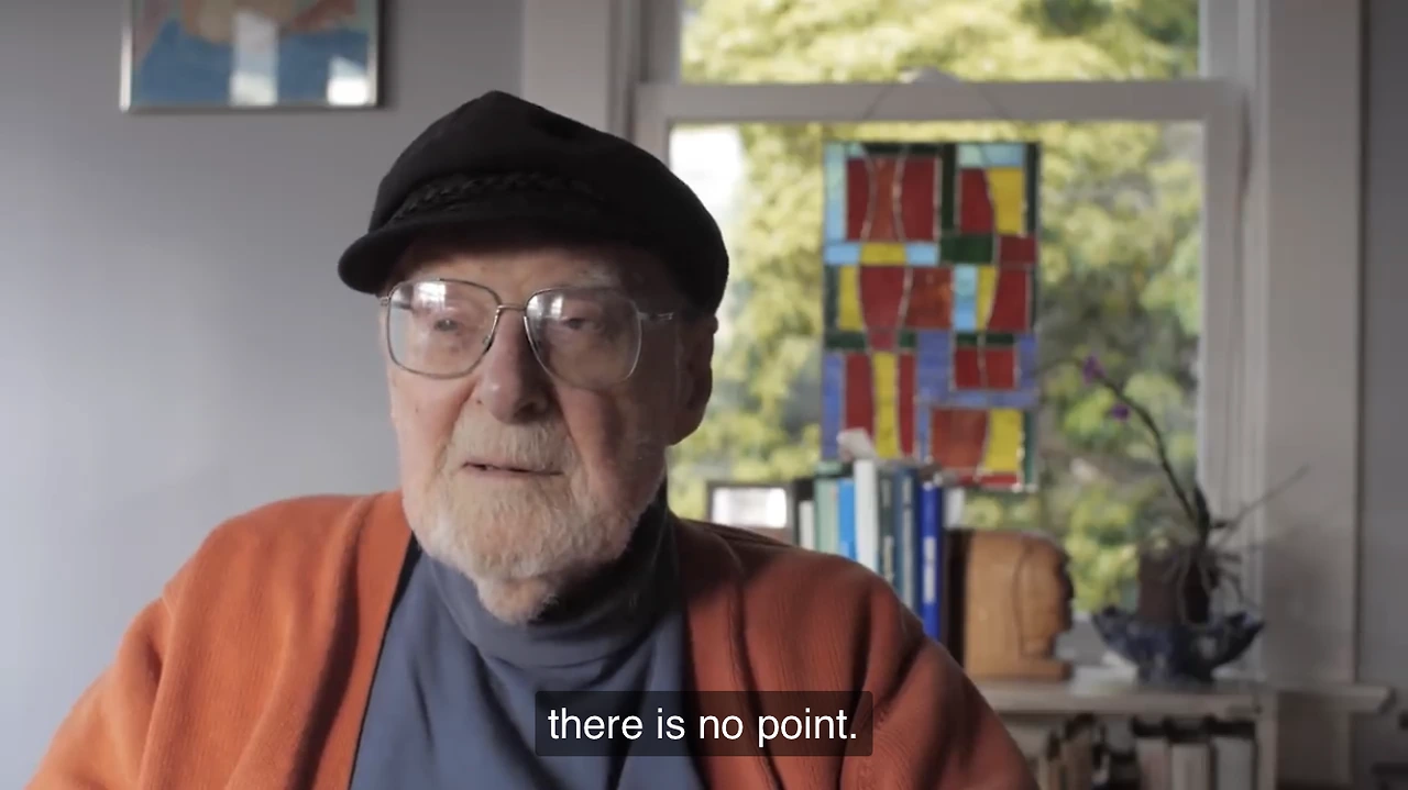 70여년간 행복한 결혼생활을 했던 와이프가 떠나고 혼자 남겨진 것에 대해 이야기하는 부분에서, 그는 슬픔에 북받쳐 얼굴을 파묻고 흐느낀다. 평생을 함께 일하고, 함께 여행하며, 함께 행복했던 와이프가 없는 지금 그의 삶의 중심에는 공허함이 있다고. 그녀가 떠나면서 그의 일부분도 함께 떠났기 때문이라고 하는 부분이 굉장히 슬펐다.