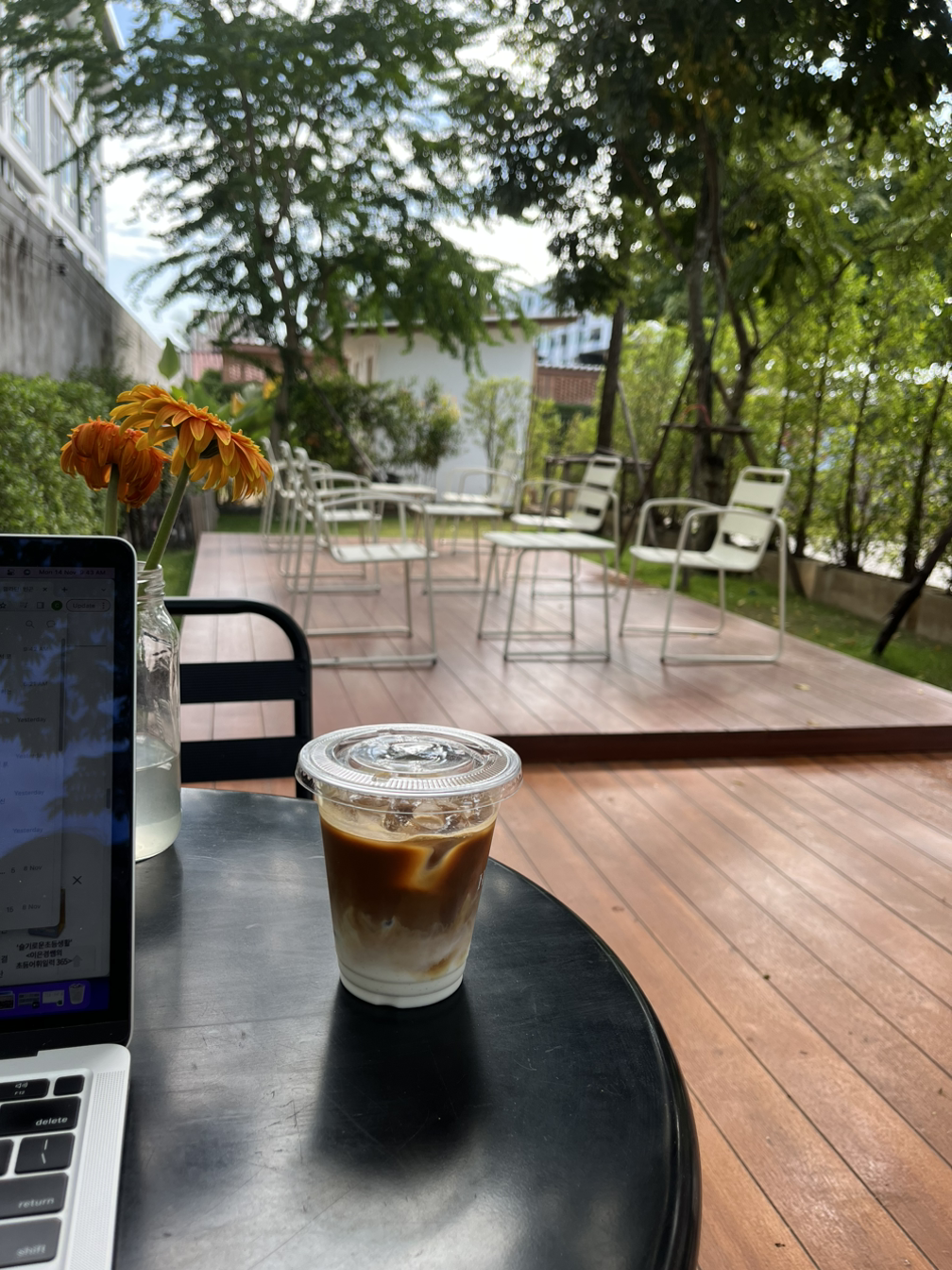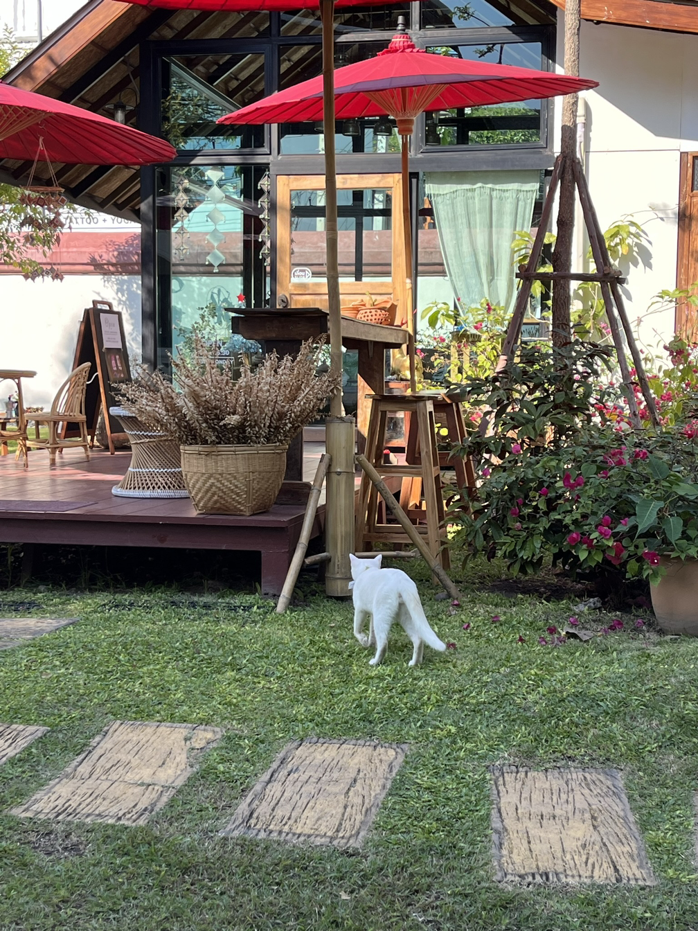 간단하게 시리얼을 먹고 노트북을 챙겨서 집 앞 커피숍에 갔다. 치앙마이의 겨울(11월-1월)은 날씨가 너무 좋다. 아침에는 얇은 가디건을 걸칠정도로 바람이 선선하고 (치앙마이 사람들은 두꺼운 후드나 점퍼를 입기도 한다), 낮이 되면 햇살이 비쳐서 봄에서 여름을 넘어가는 정도의 따뜻한 날씨 (25도 내외)가 된다. 그러다 보니 야외 생활을 하기에 딱 좋다. 오늘은 야외 좌석이 있는 곳들만 찾아다녀봐야지.