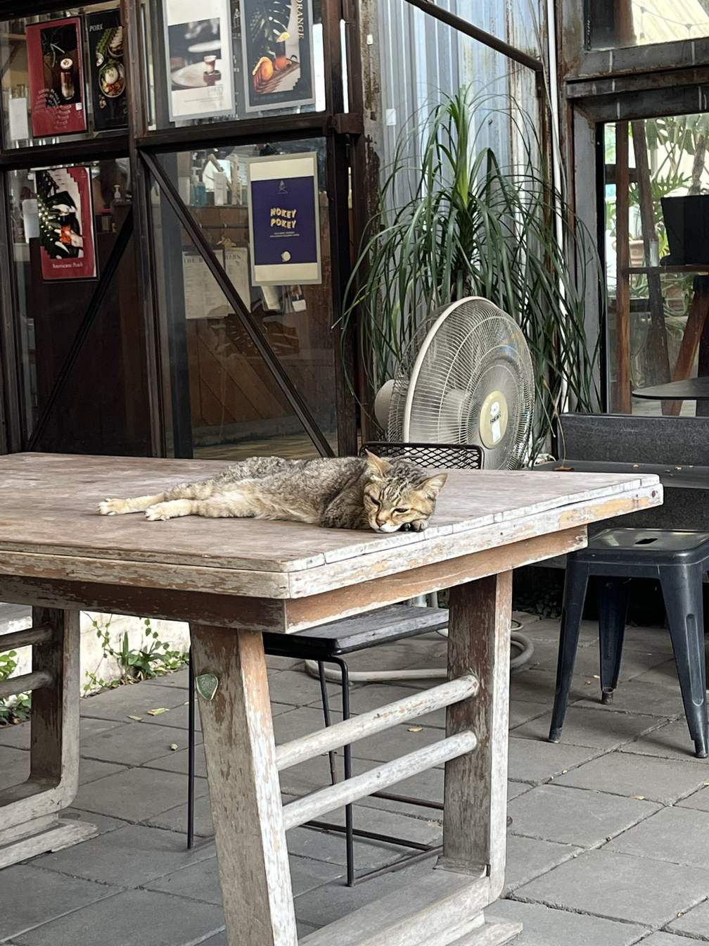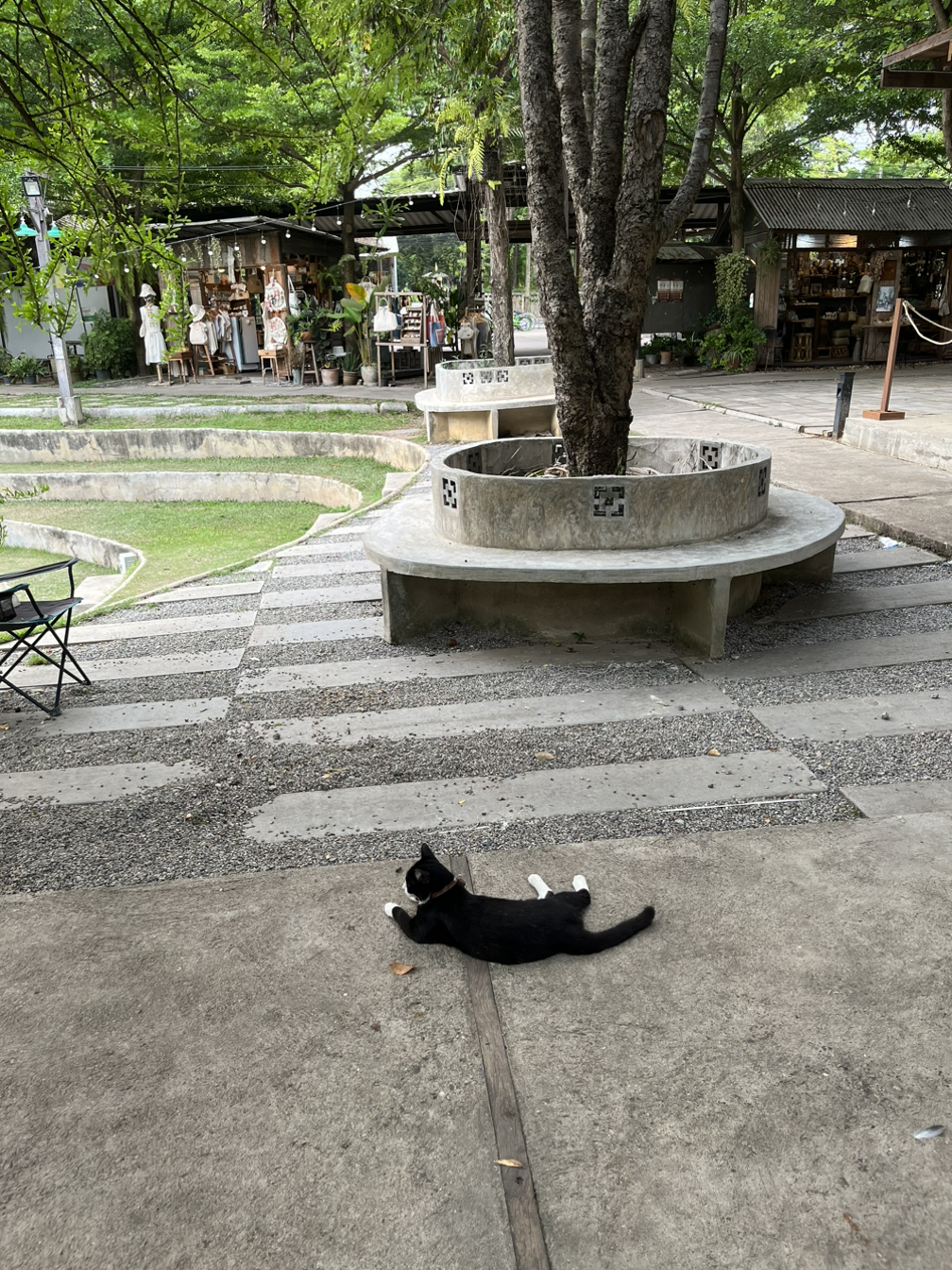 9시 전에 커피숍에 오면 사람들이 없어 한가하다. 도착하니 바리스타가 한가롭게 아이스 아메리카노를 마시며, 고양이를 쓰다듬고 있다. 태국스러운 이미지 중에 내가 가장 좋아하는 장면이다. 길거리 고양이들을 쓰다듬으며 한없이 다정한 미소를 짓는 태국사람들. 원래 강아지 파라서 고양이는 그리 좋아하지 않는데 (왠지 눈빛이 무서워), 태국에서 지내면서 달라졌다. 고양이들의 새침하고 귀여운 매력을 알아버렸다. 여전히 처음 만나는 고양이에게 먼저 다가가지는 못하지만, 사람들이 쓰다듬고 있는 고양이를 보면 나도 기다렸다가 기회가 나면 쓰다듬고 안아준다.