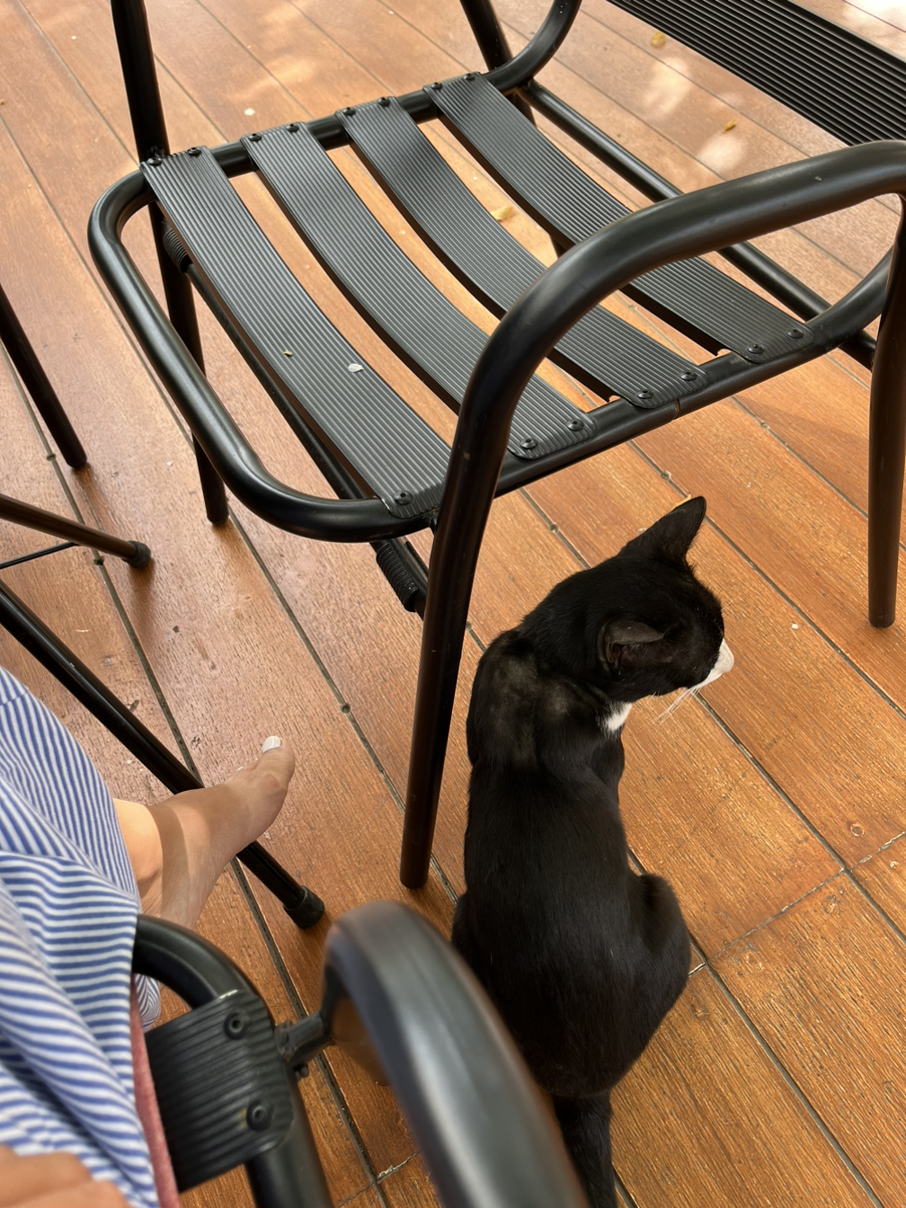 치앙마이에서 나는 많은 시간 혼자였는데, 그때마다 말없이 나에게 다가온 친구들이 있었다. 내가 혼자 앉아서 커피를 마실 때나, 책을 읽거나 혼자 생각에 잠겨있을 때에도. 이곳의 고양이와 강아지들은 조용히 내 곁에 다가오곤 했다. 우리는 말없이 서로의 존재를 느끼며 한 공간에 있을 뿐이었지만, 그것만으로도 이상하게 따뜻한 위안을 받았다.