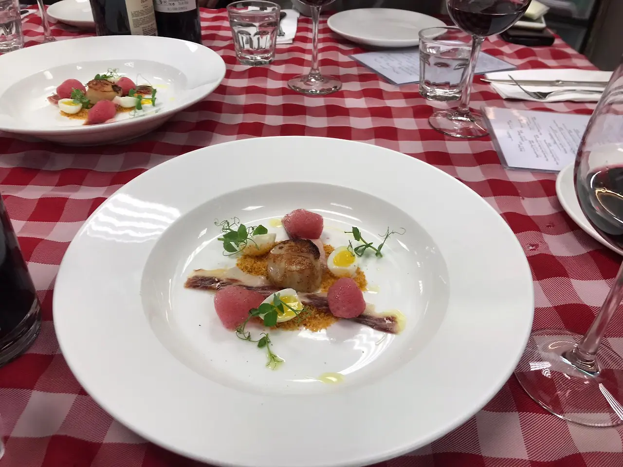 그 사이에서 우리는 유럽식 테이블 앞에 앉아있다. 곧 빵과 버터가 나오고, 전채요리가 하나씩 나왔다. 생각보다 근사한 프레젠테이션에 놀랐다. 정성 들여 프레젠테이션 한 음식과 좋은 재료를 쓴 것이 눈에 띄었다. 다른 음식들도 다 좋았지만, 그중에서도 스캘럽을 가장 맛있게 먹었다.