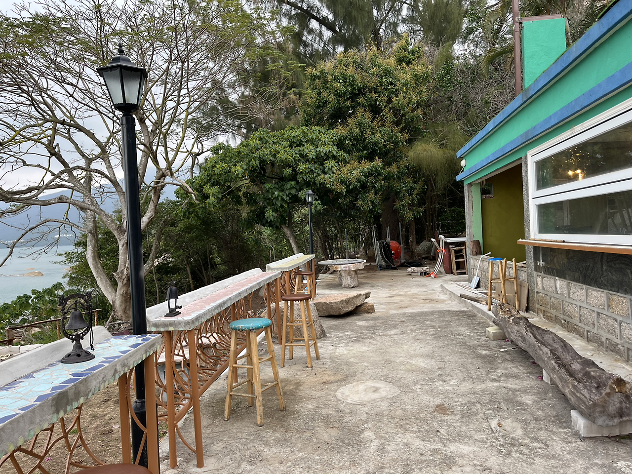 이 하이킹의 다른 이름은 ‘버려진 건물 탐험’이기도 한데, 하이킹 트레일 중간에 폐허가 된 건물과 리조트를 지나가기 때문이다. 걷기 시작해서 45분쯤 지났을 때, 엄청나게 아름다운 바다 풍경 앞에 서있는 건물을 만났다. 이 작은 이층 건물은 예전에는 2층에는 게스트 숙소를 운영하고, 1층에는 식당과 바를 운영했다고 한다. 10년도 전에 문을 닫은 이후로 오랫동안 건물은 버려진 채 방치되었다. 이곳에 올 때마다, 이렇게 아름다운 풍경이 버려지고 있다는 생각에 늘 씁쓸했는데, 이번에 보니 레노베이션이 진행되고 있는 흔적이 보였다. 야외 테이블과 조경작업 정도만 진행이 되었는데도, 너무나 예쁘게 변신을 하고 있는 모습이 보여서 기뻤다.
