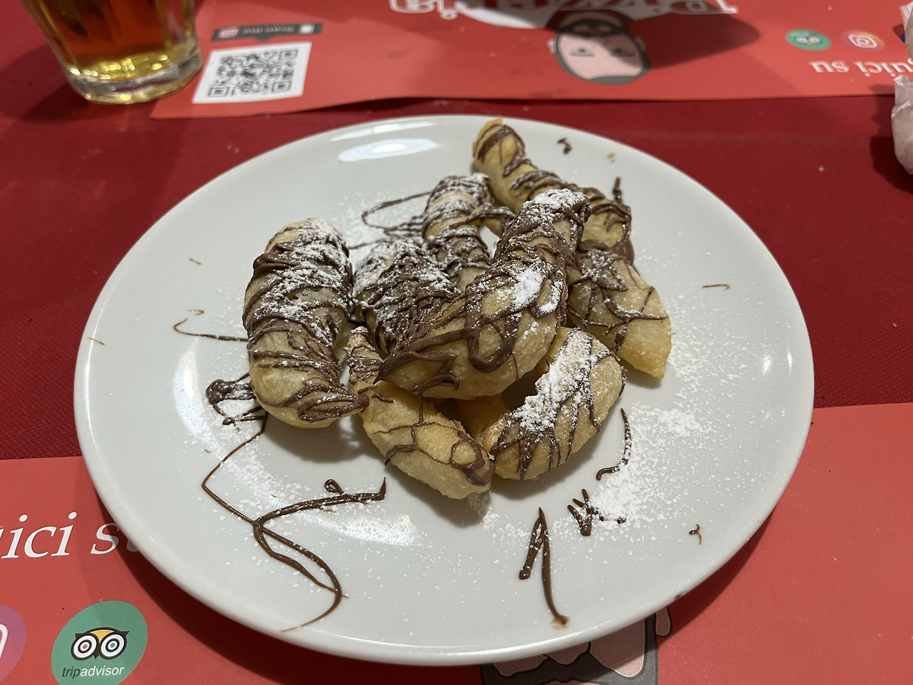 접시에 남은 올리브 오일까지 도우로 싹싹 닦아내듯 먹었더니, 직원들이 아주 만족스러워했다. 계산서를 부탁하자 잠시만 기다리라고 하더니 서비스라며 디저트를 주셨다. 갓 구운 도우에 슈가 파우더와 뉴텔라가 뿌려져 있었다. 이미 배가 불러서 이걸 어떻게 다 먹지 싶었는데, 하나씩 먹다 보니 어느새 다 비워버리고 말았다. 튀겨낸 도넛인데도 하나도 기름지지 않고 쫀득쫀득한 식감이 너무 맛있었다.