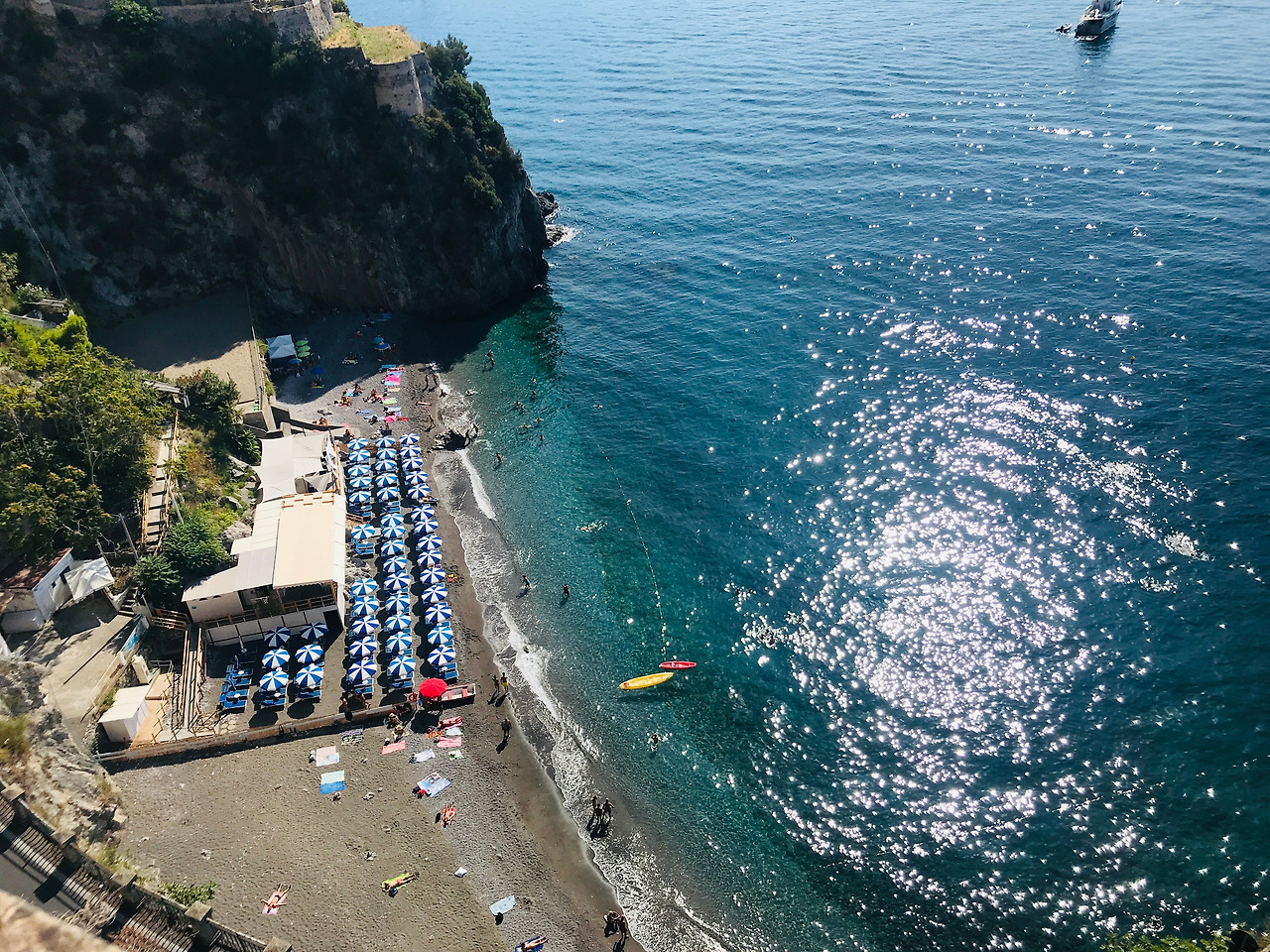 한 여름의 아말피 해변은 어딜 가나 당일치기 여행을 하고 있는 단체 관광객들로 붐볐고, 해변에는 햇볕에 검게 그을린 피부를 자랑스럽게 드러낸 장기 투숙객들이 썬배드를 차지하고 있었다. 우리는 푸르른 해변의 풍경을 옆에 끼고서 신나게 하이킹을 시작했다.